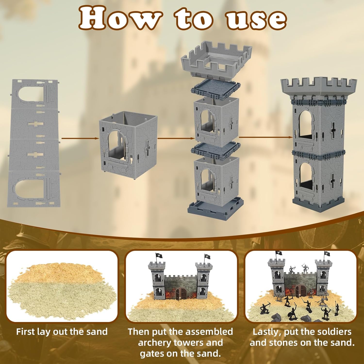 Medieval Citadel Themed: Knight dragon sensory sand bin is designed with medieval citadel themed, classic and distinctive.