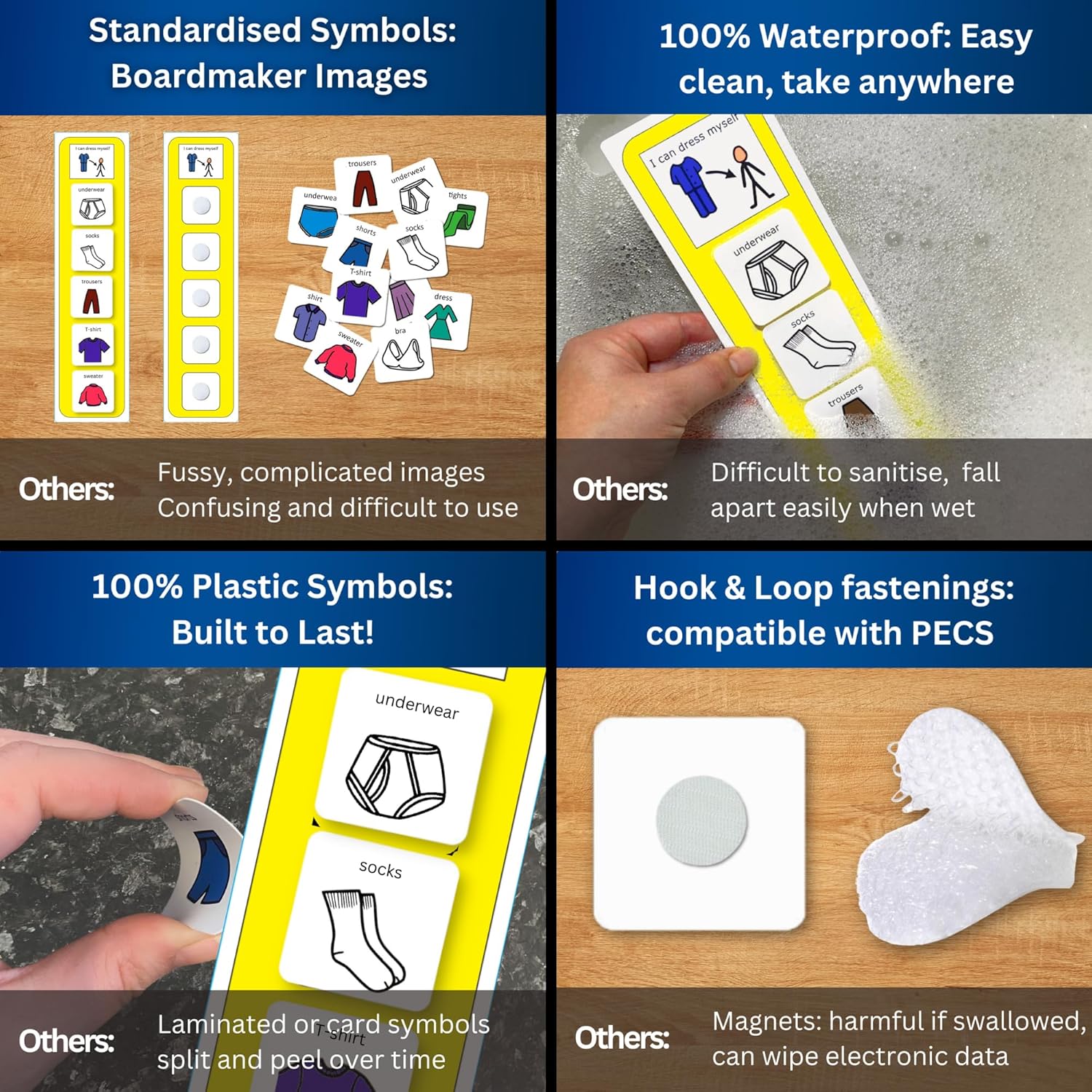 We use hook and loop – not magnets that are harmful when swallowed and might wipe digital knowledge. Appropriate along with your present PECs symbols.
