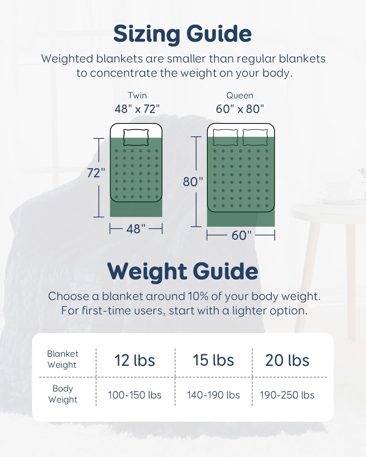 Weight & Measurement Information: Select one round 10% of your physique weight. For first-time customers, beginning with a lighter choice is advisable. Notice: Sized smaller than common blankets to suit simply the mattress (not full mattress) and forestall sliding off