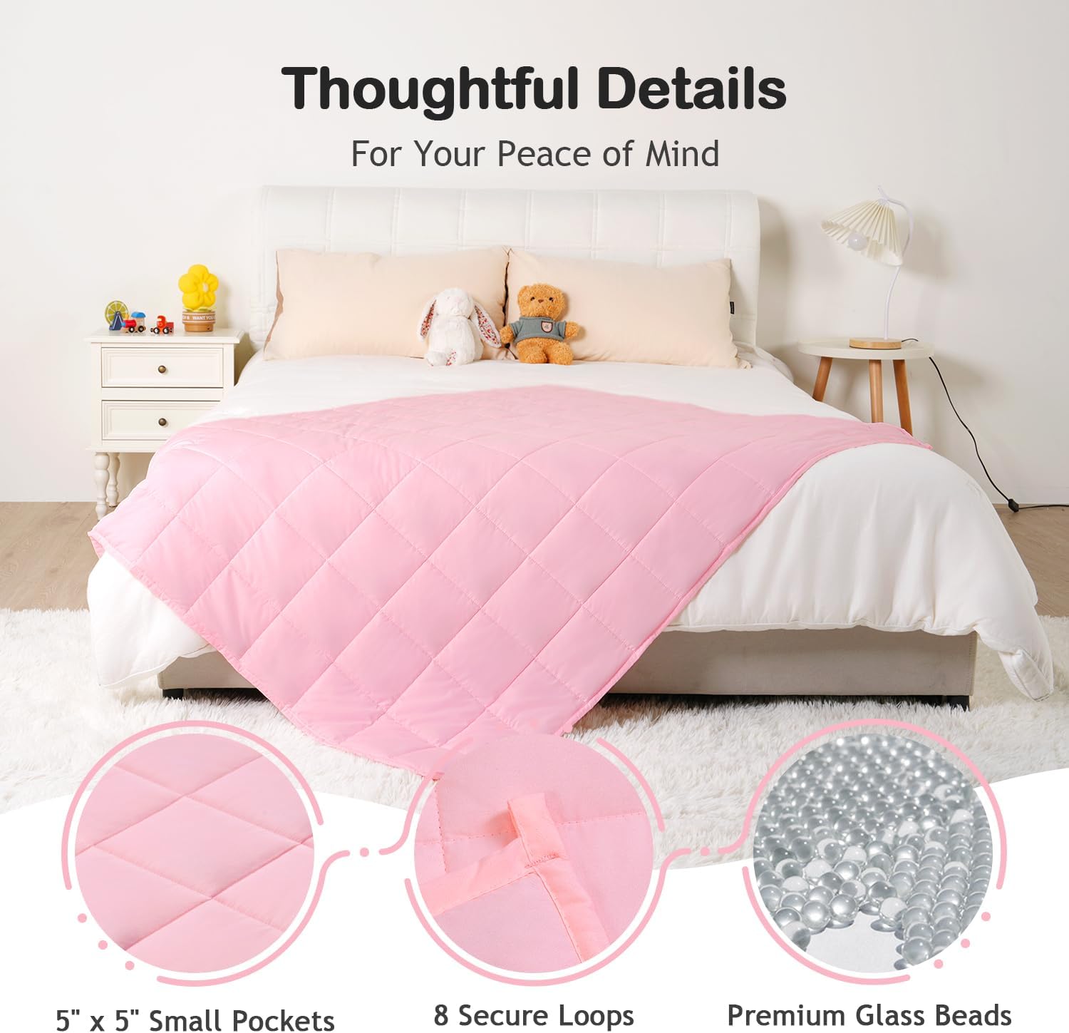Thoughtfully Designed: That includes multi-layer development and high-density stitching, this 41″ x 60″ small weighted blanket retains the beads securely in place inside 5″ x 5″ pockets, stopping leakage, shifting, or noise