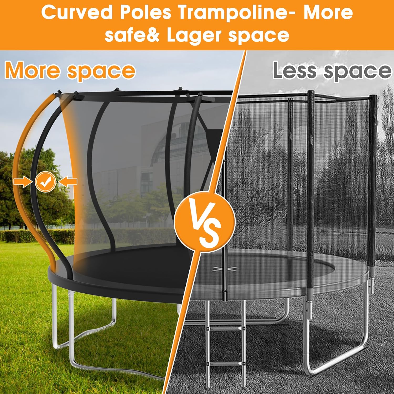 💪Constructed to Final: KOFUN 10-foot trampoline chooses 1.5mm metal tubes which are galvanized metal can load a deep, highly effective bounce. Endure the multi-layer rust-proofing and sturdiness course of, the highest rails and W-shape legs have been linked by T-shaped connectors, making certain the tight connection of the trampoline construction, and growing the steadiness of the trampoline. The web poles are wrapped with 10mm foam can shield them from UV, rain, and rust. Make the body have an extended life.