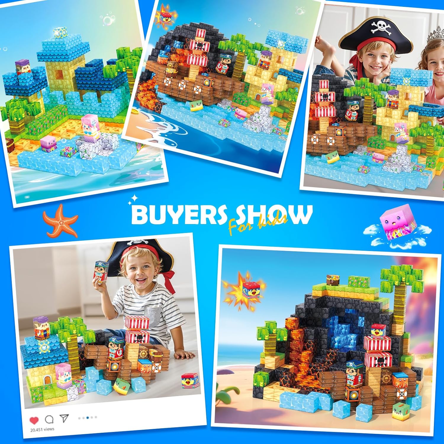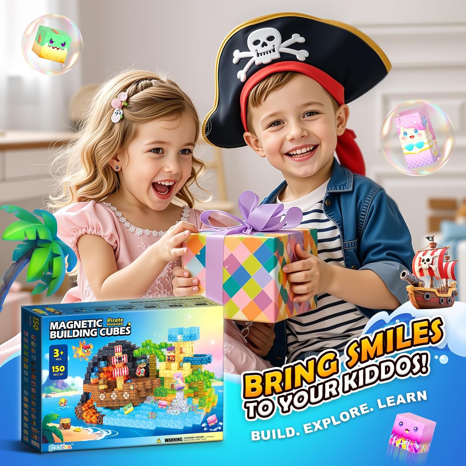 【Triple-Theme Magnetic Blocks】Embark on a magical ocean journey with our 150 magnetic blocks, that includes 34 playful designs throughout 3 thrilling themes—pirate ships, mermaid castles, and underwater worlds. Every block is designed with clear, recognizable patterns, making it straightforward for teenagers ages 3+ to start out constructing and spark limitless creativity.