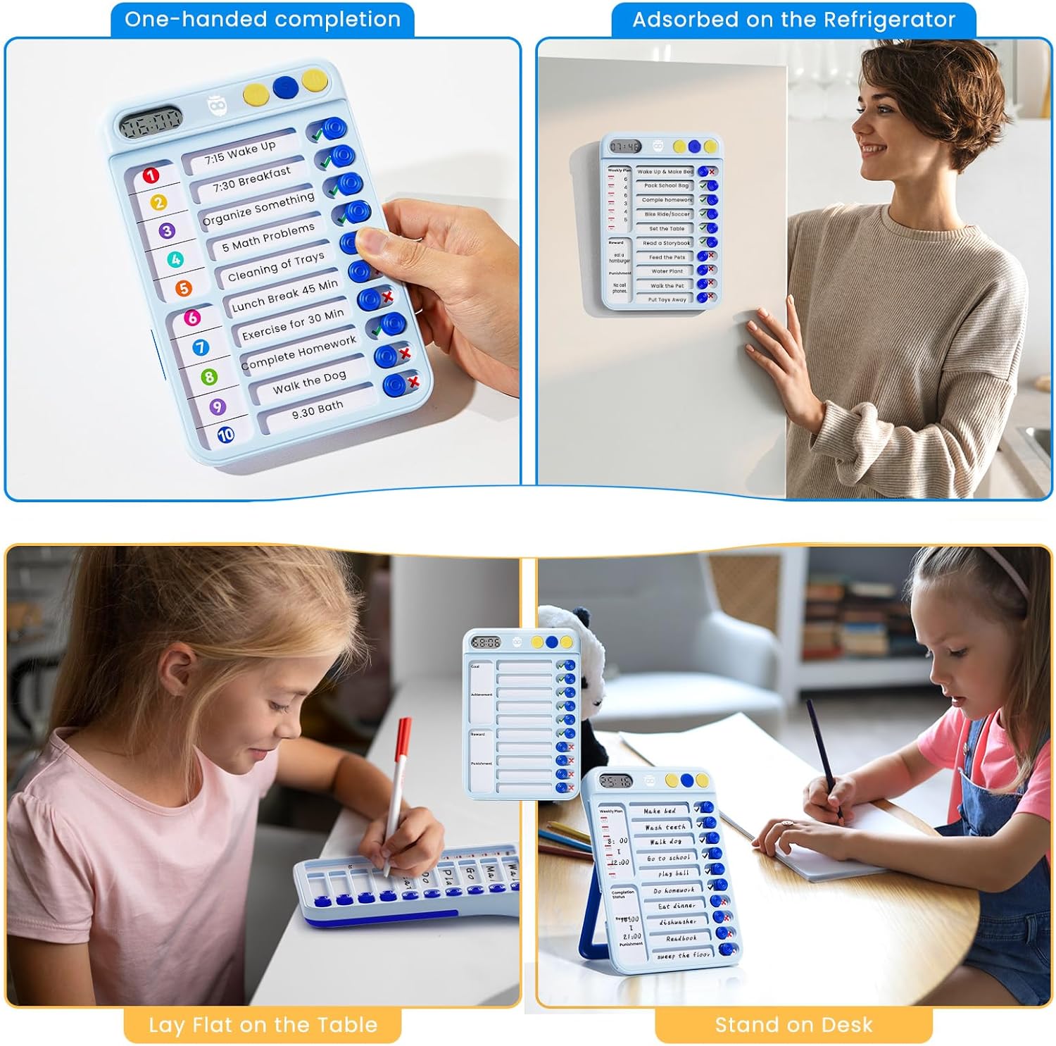 【EUSABLE DRY ERASE CHORE CHART】Chore chart for teenagers with timer comes geared up with 6pcs reusable dry erase sheets, 12pcs customizable activity papers, 4pcs weekly plan, 1pc english sticker and 1pc erasable marker. Chores chart for teenagers is designed to enhance self-discipline and group, making purpose monitoring and activity administration environment friendly for everybody. A sensible resolution for every day and long-term household targets