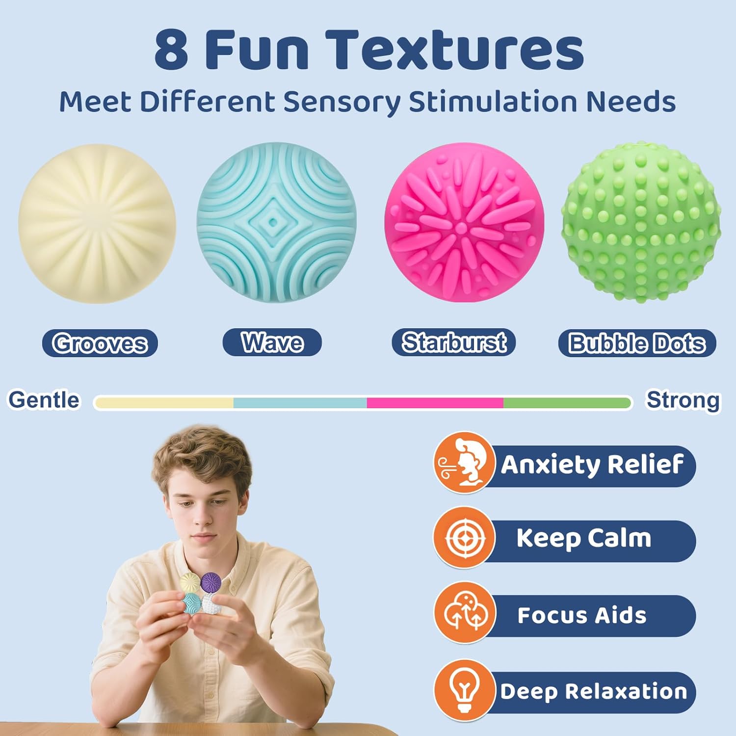 【Tactile Selection for Sensory Wants】Every ball includes a distinct texture—from comfortable ridges to bumpy spikes—designed to fulfill a variety of sensory preferences. Particularly useful for people with ADHD, autism, or sensory sensitivities—each children and adults