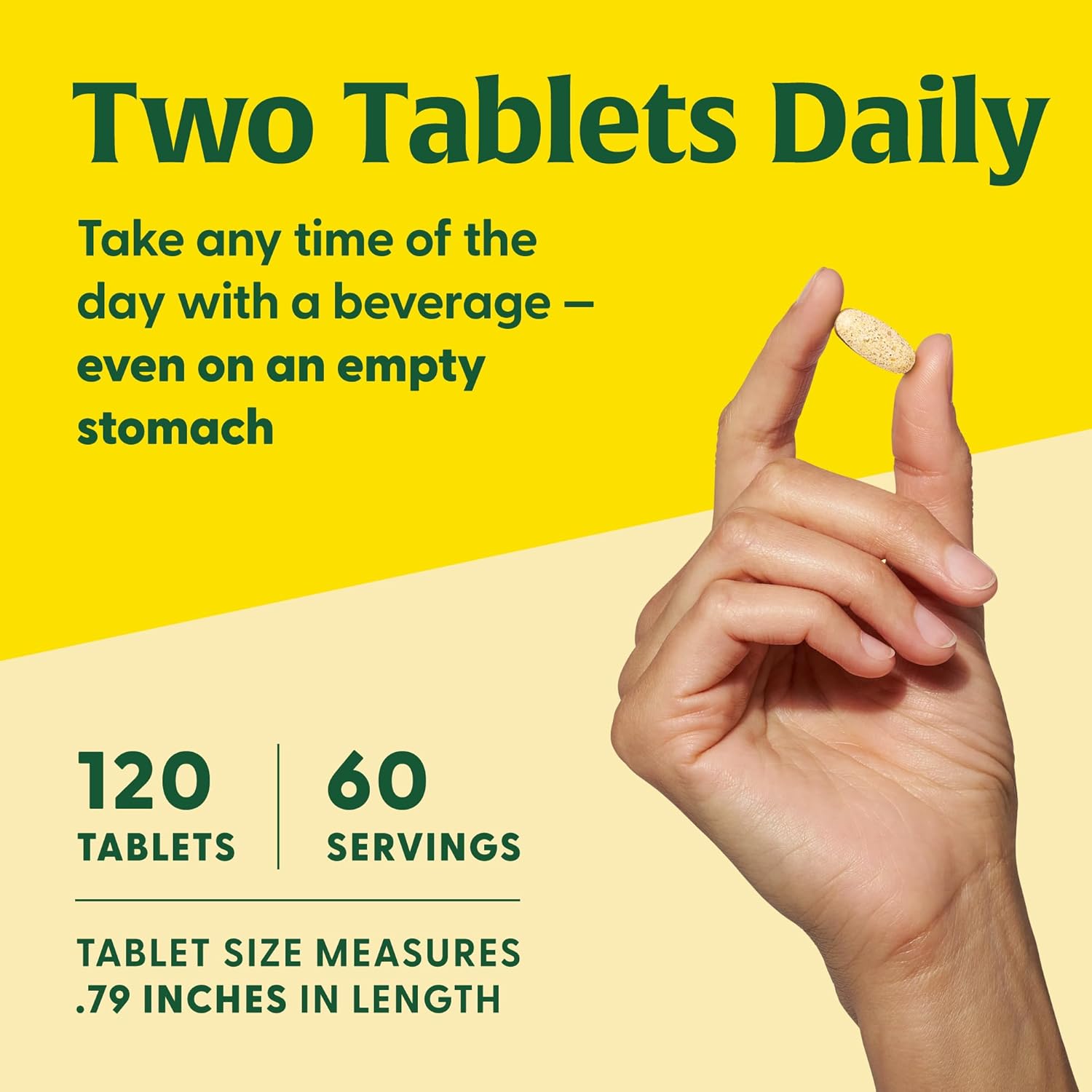 May be taken any time of day, even on an empty abdomen. 2 tablets each day