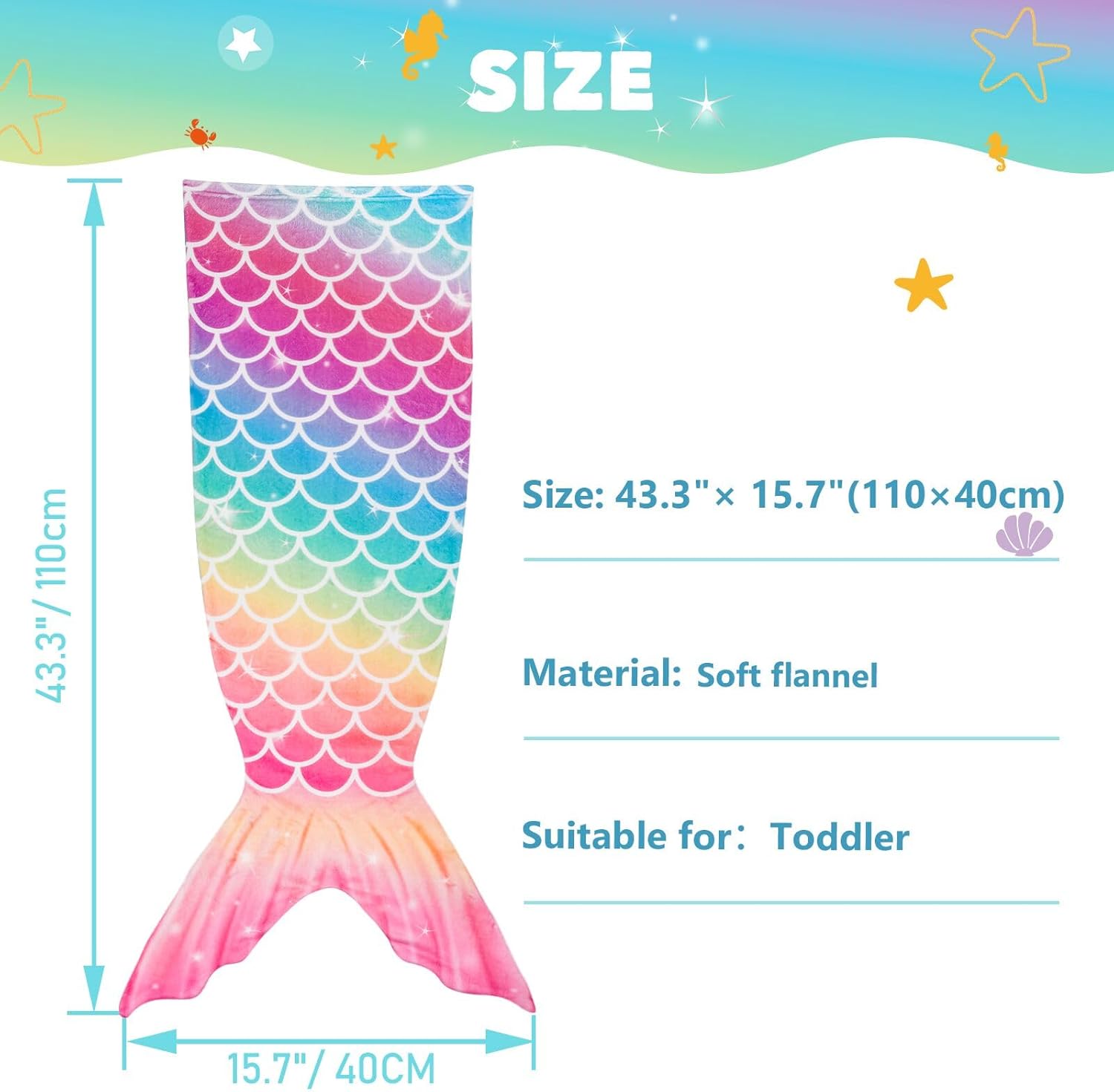 DREAMY DESIGN : Mermaid tail blanket with rainbow-colored scales is much more dreamy, fulfilling all ladies’ desires of mermaids; Carrying the blanket, your woman will seem like the gorgeous mermaid within the film