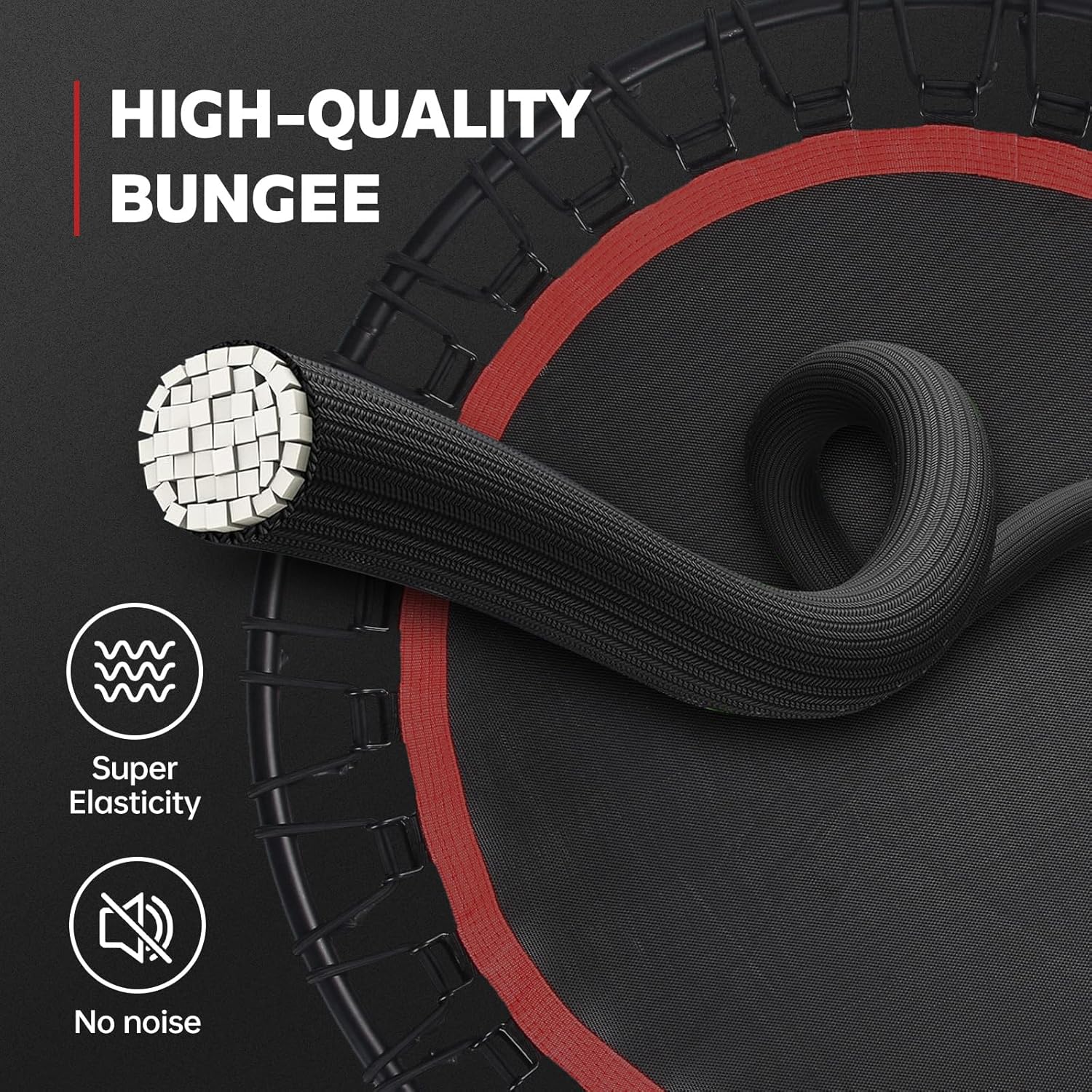 Easy, Quiet Bounce: Outfitted with 32 high-quality bungee cords, our rebounder gives a clean, quiet bounce with constant elasticity. The bungee rebounder design reduces noise, making it superb for indoor use with out disturbing others.