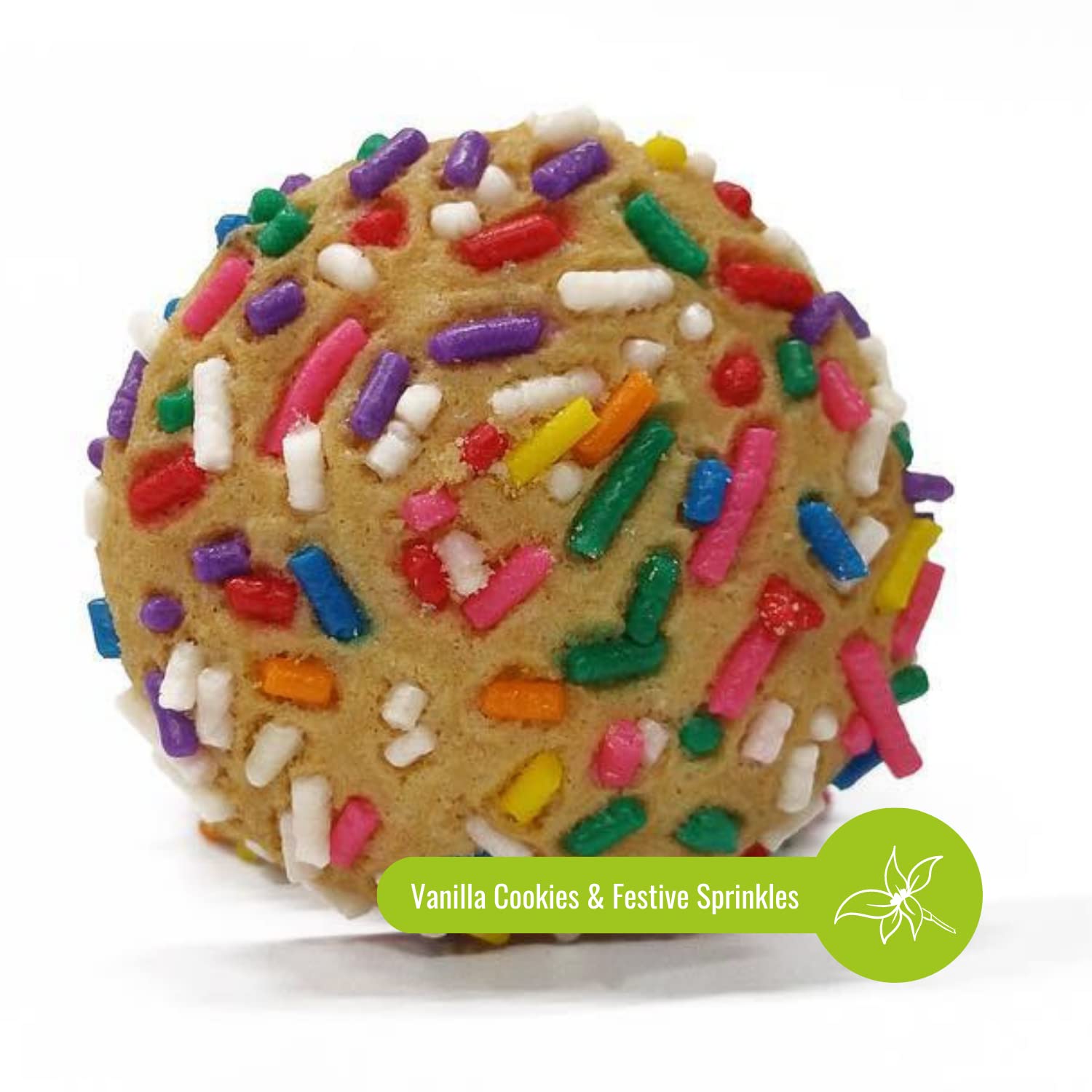 Nice tasting crisp cookies with an assortment of festive and colourful sprinkles. Gluten Free, Dairy Free, Nut Free and scrumptious!