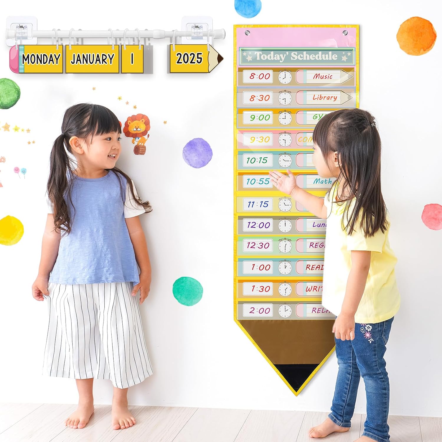 Appropriate for Numerous Situations: our each day schedule pocket chart makes it straightforward to handle classroom actions for the whole day; It encourages college students to work independently, comply with schedules, plan forward, and preserve order; It reinforces a way of time for teenagers and preschoolers; The pocket chart promotes the event of a wide range of expertise at house in elementary lecture rooms in a enjoyable approach! Create an thrilling calendar routine for college students