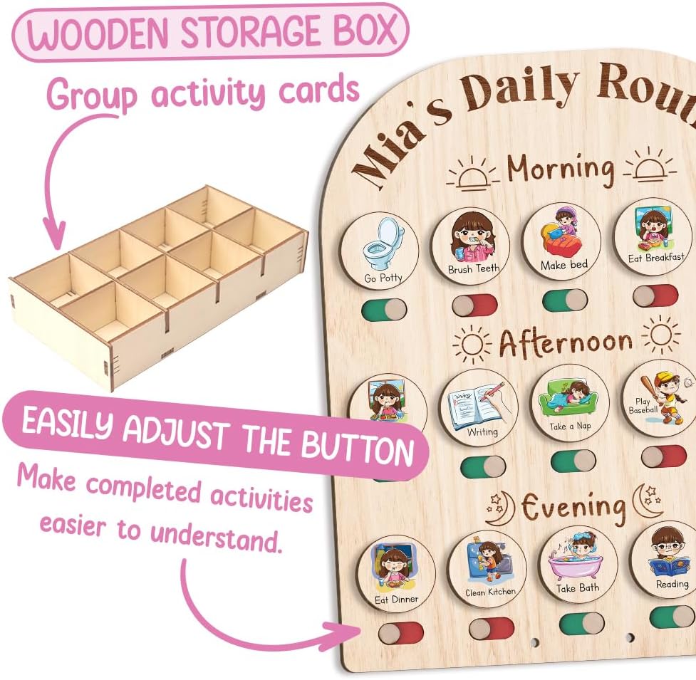 VISUAL SCHEDULE WITH REWARD JAR: Our wood chore chart contains a star jar reward jar, serving to reinforce every day routines of morning, afternoon, and night whereas motivating kids by means of constructive reinforcement