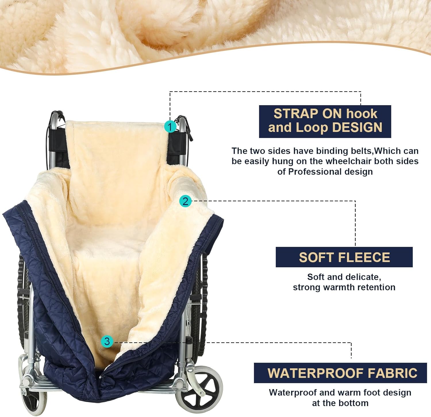 Effectively Designed for Compatibility: with a width of about 25.5 inches and size of about 51 inches, this wheelchair blanket is the acceptable dimension to suit most handbook and powered wheelchairs; With two hook and loop straps, one on either side, its design permits simple attachment with straps, making certain it stays put even throughout actions