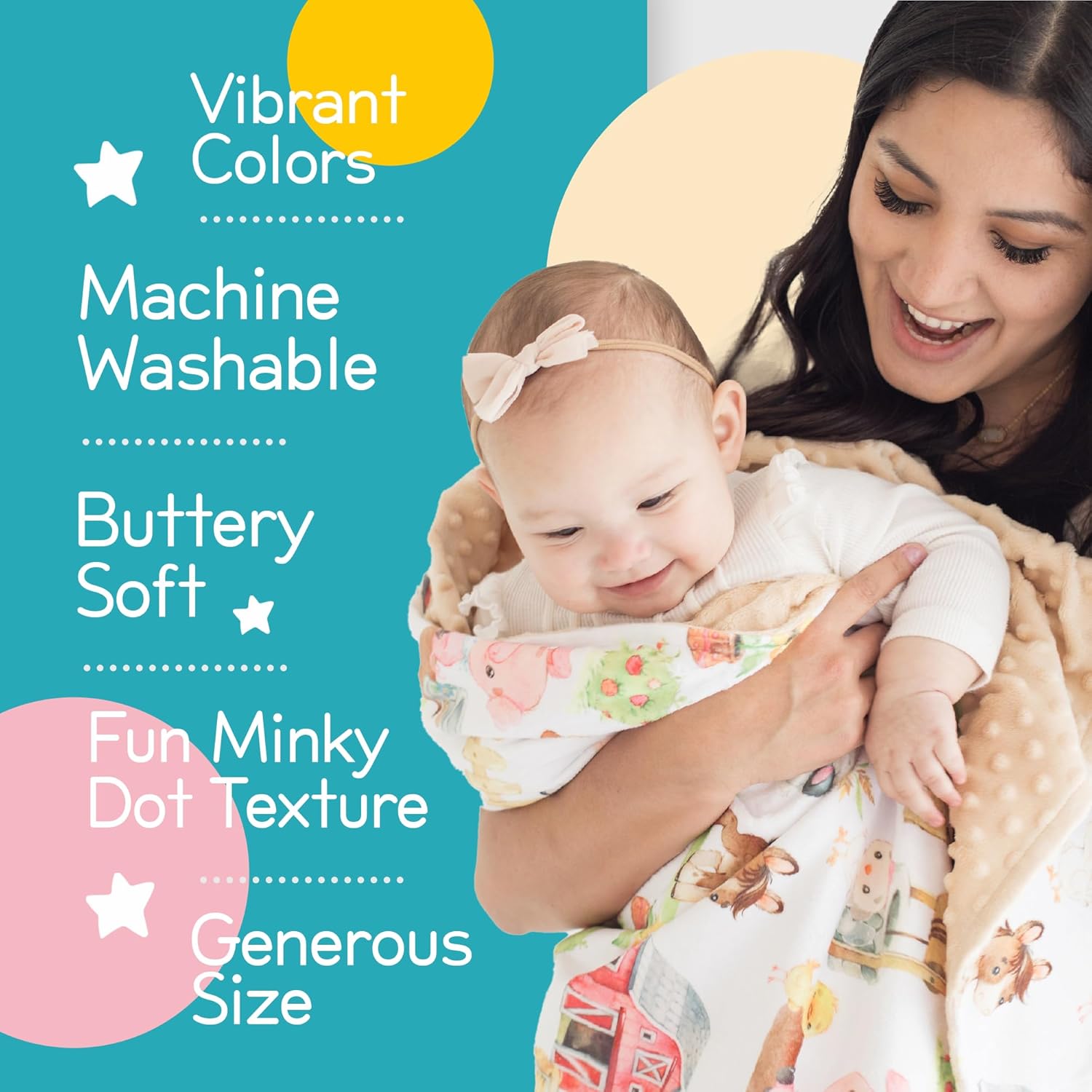 EXCITING PATTERNS AND SENSORY FUN 👼🏻 – Our unique distinctive, imaginative designs make our merchandise visually interesting to children. – Our plush child blanket boasts vibrant colours with lovely patterns that keep performance. The playful minky dot texture enhances sensory stimulation, including an additional layer of enjoyment to the blanket.