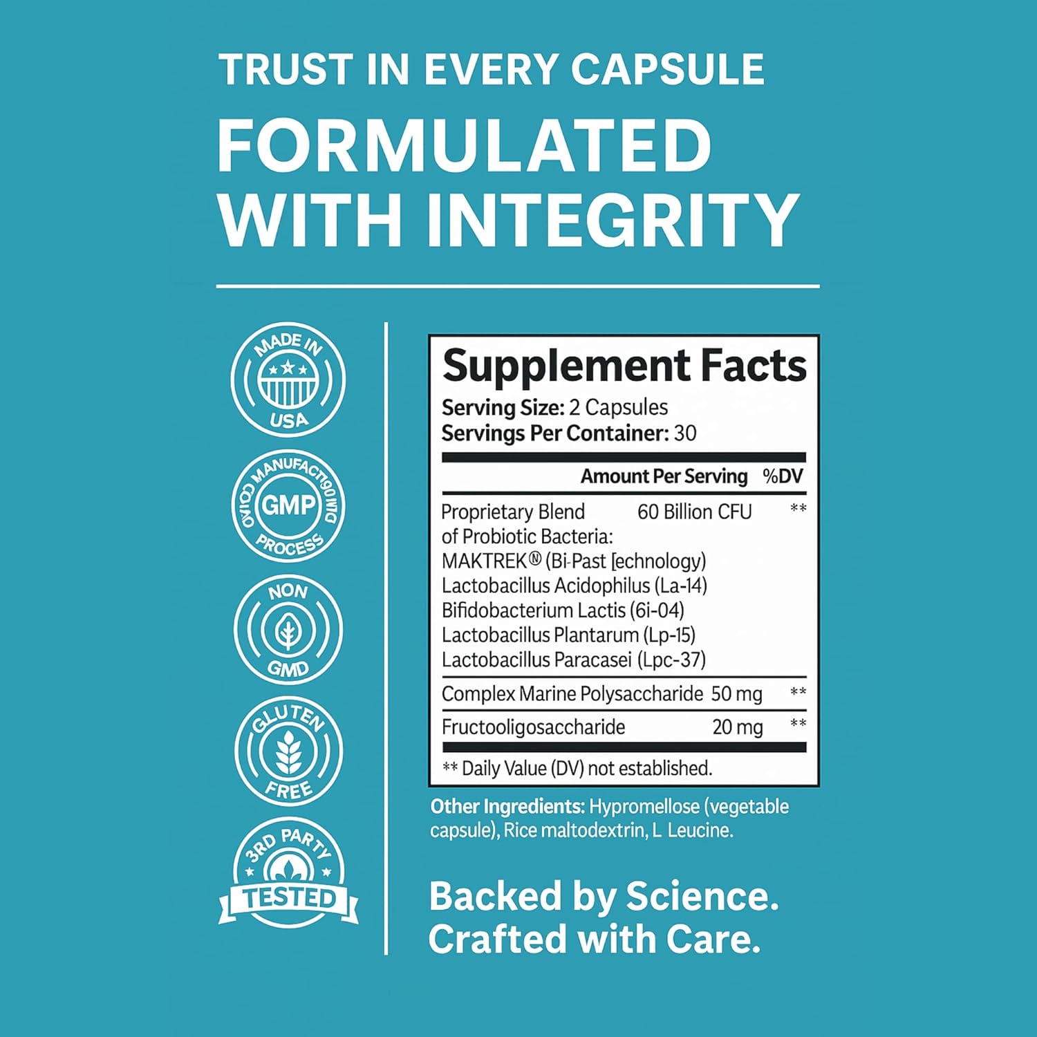 🚀 Superior MAKTREK Supply System – Twin-layer Bi-Go Know-how ensures probiotics survive abdomen acid and attain the intestine alive—superior absorption, no refrigeration wanted.