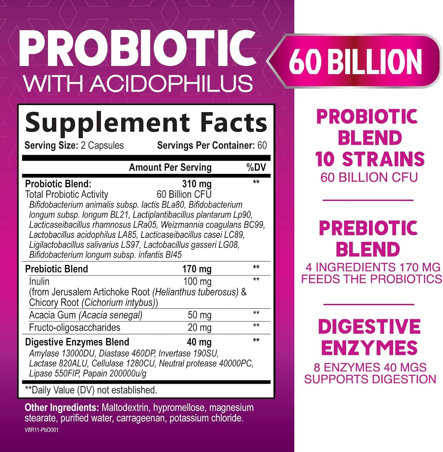 Probiotics for Digestive Well being: Take 2 capsules every day to assist a various microbiome with 60 Billion CFU from 10 distinctive probiotic strains + a whole prebiotic mix