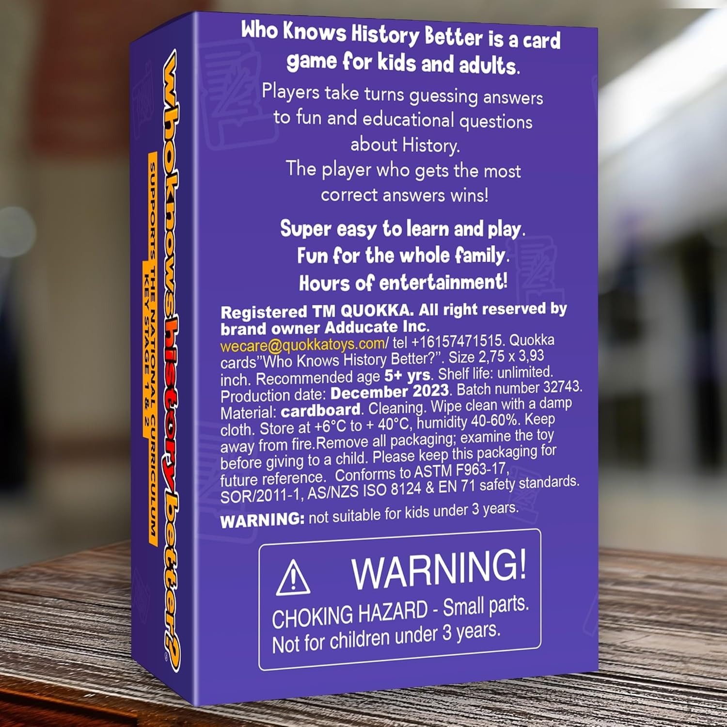 NEW FAMILY HISTORY QUIZ! Who Is aware of Historical past Higher is a card recreation for youths and adults. Gamers take turns guessing solutions to enjoyable and academic questions on Historical past.