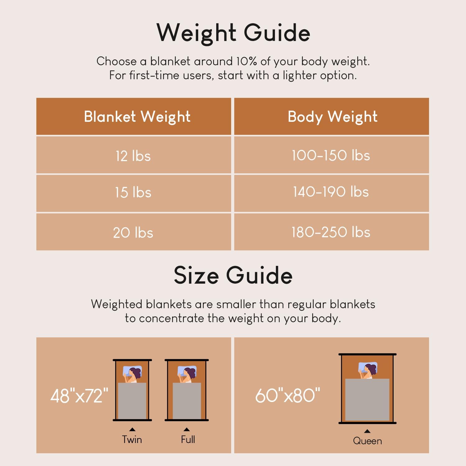 Weight and Measurement Information: We advocate selecting a weighted blanket round 10% of your physique weight. For first-time customers, begin with a lighter possibility. PLEASE NOTE that weighted blankets are smaller than common ones, becoming simply the mattress to forestall slipping up and doing