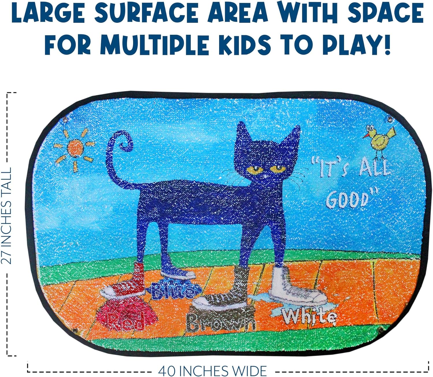 Convey Pete’s cool, colourful story to life with this formally licensed 40″x27″ reversible sequins sensory mat. As children swipe the sequins, Pete’s footwear magically “change coloration,” creating an immersive sensory expertise. Designed for lecture rooms, sensory rooms, and storytime at dwelling, this play mat helps youngsters develop advantageous motor abilities, focus, and artistic pondering. Folds down flat right into a journey pouch for simple portability.