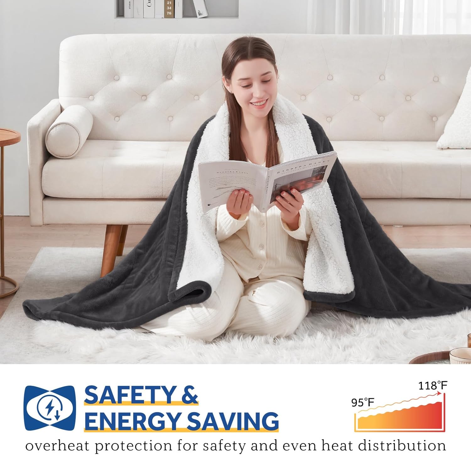 Quick Heating and Overheat Safety : Sealy heated blanket throw heats up rapidly, programmed with a pre-heat process for fast warmth distribution while you activate, and revert mechanically to the final consolation stage setting used after quarter-hour upon restart. Insulated heating wire helps monitor real-time temperature and stop from overheating, smooth and versatile wire with even warmth distribution, guarantee safer person expertise and additional leaves you peace of thoughts. Nice for house use