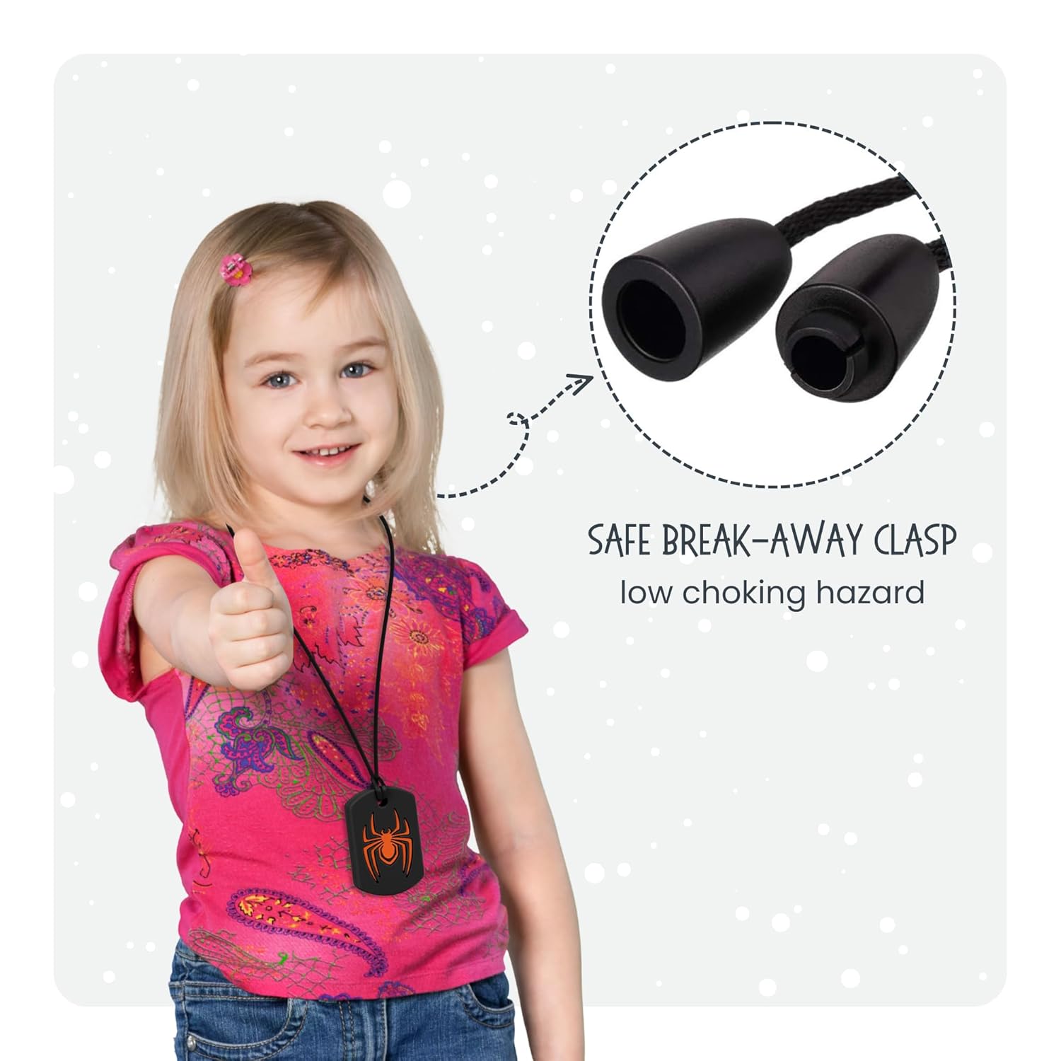Uncover our Sensory Chew Necklace set, that includes 5 trendy spider designs in impartial colours. Completely crafted for teenagers and adults, these discreet necklaces present a satisfying sensory expertise whereas mixing seamlessly into any outfit. Ideally suited for these looking for a delicate approach to handle stress, they mix performance with a contemporary aesthetic.
