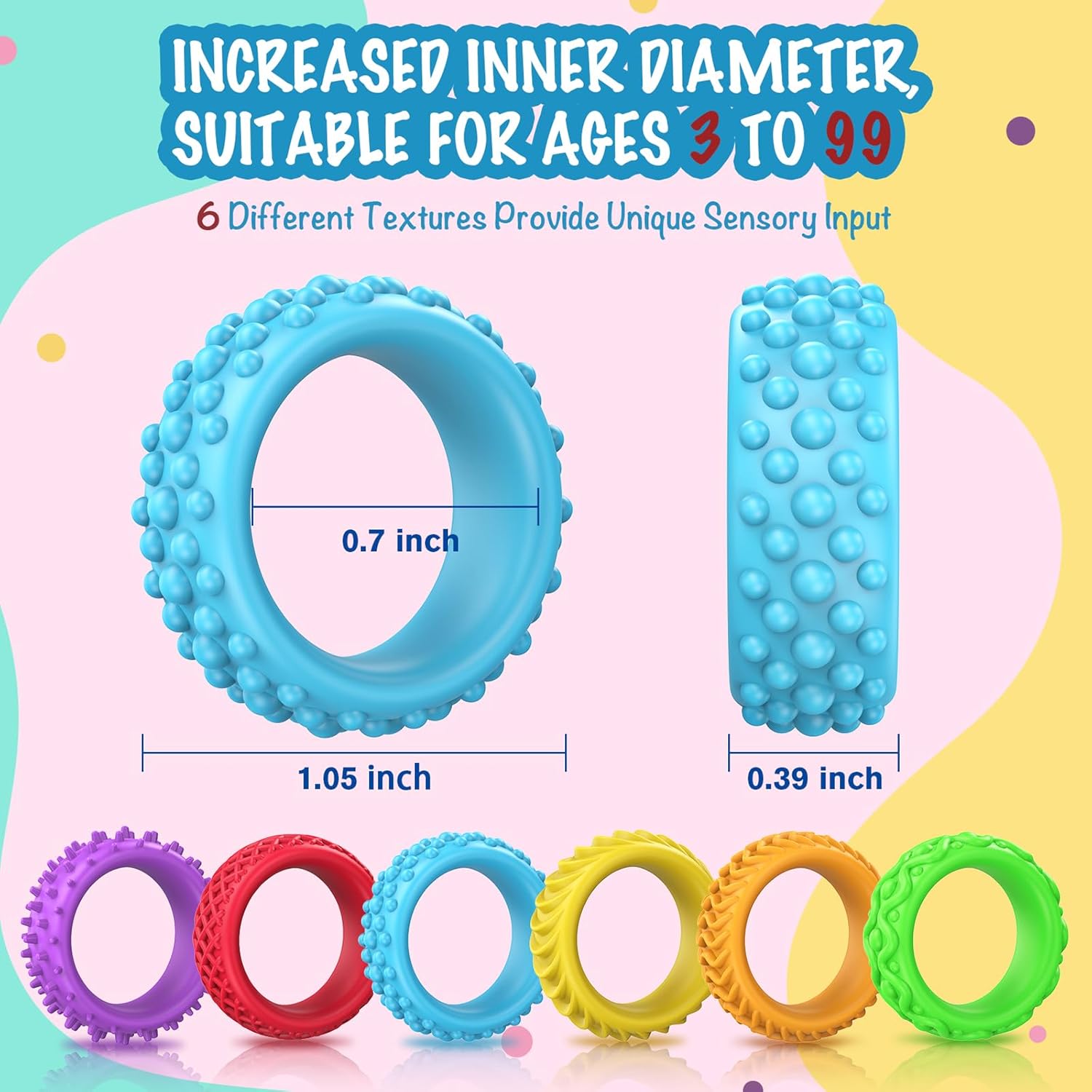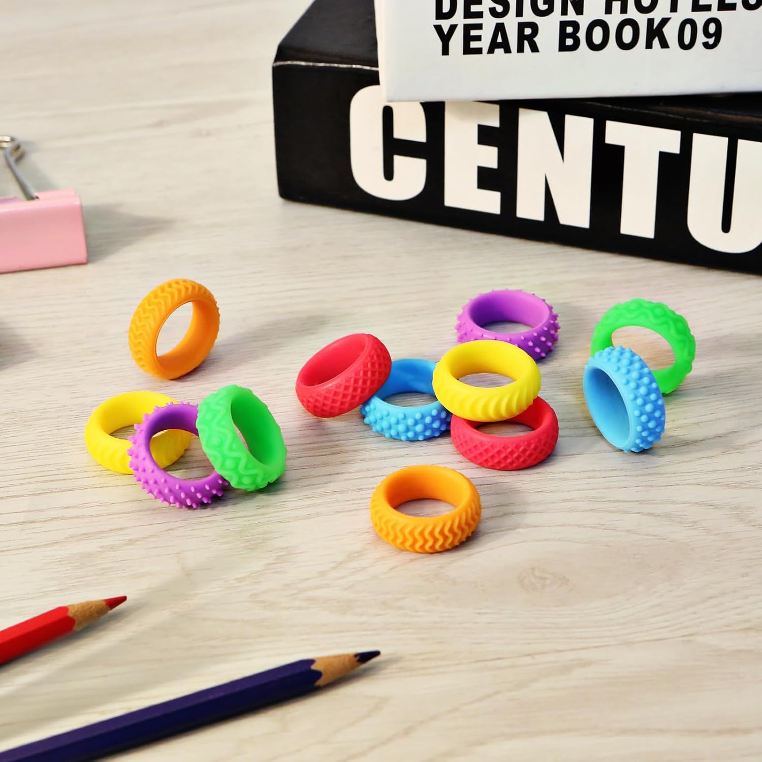 Sensory Toys Fidget Rings for Kids – 18 Pcs Chewable Silicone Quiet Classroom Fidget Toys Bulk, Spiky Small Anxiety Relief Items for ADHD Autism