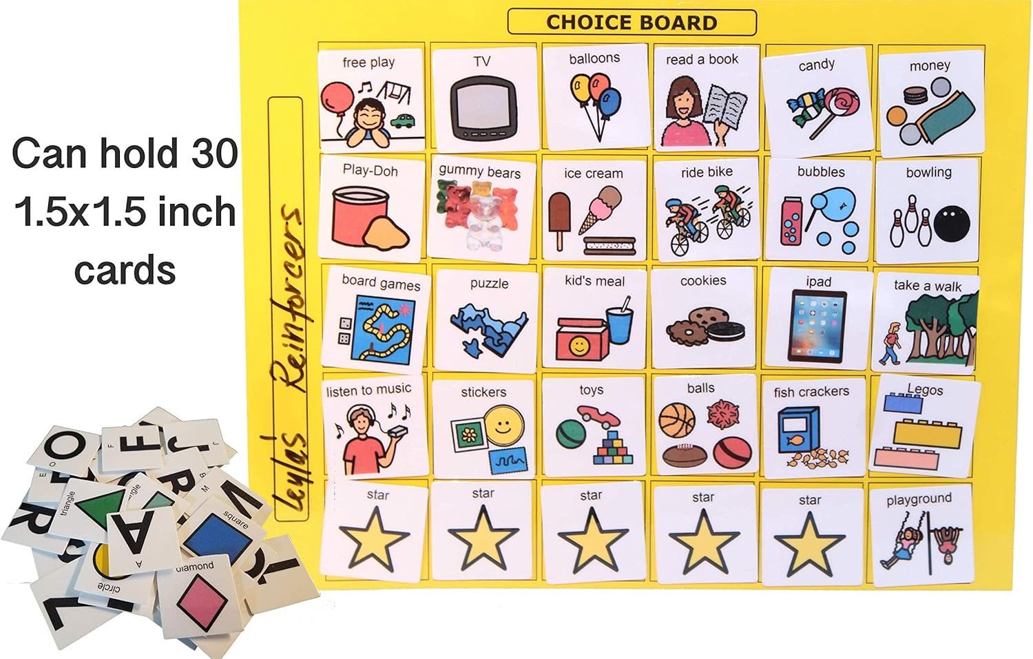 Smile4Autsim Dry Erase Visual Activity Reward Choice Laminated Board with 30 1/2″ Hook Coin -Great for Loose Pcs Flash Cards. (Yellow, 8×11 Sheet (1.5 inch Cards))