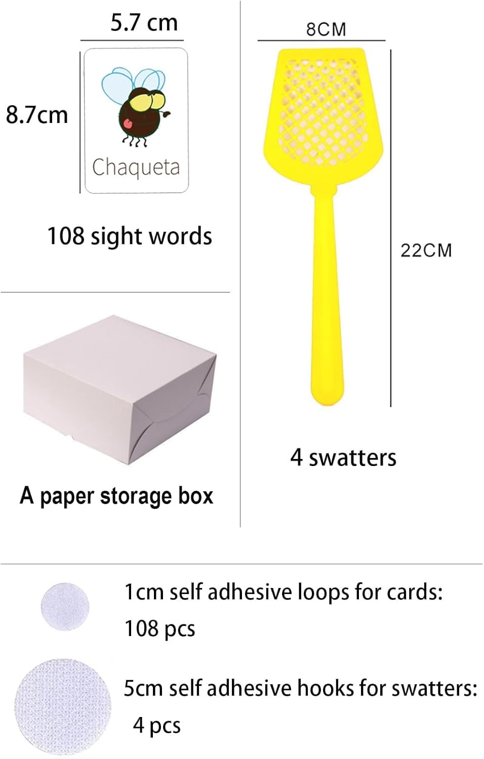 • Spanish Sight Words Game | 108 Fly Words with 4 Fly Swatters | Funny Educational Learning Games for Classroom,Kids