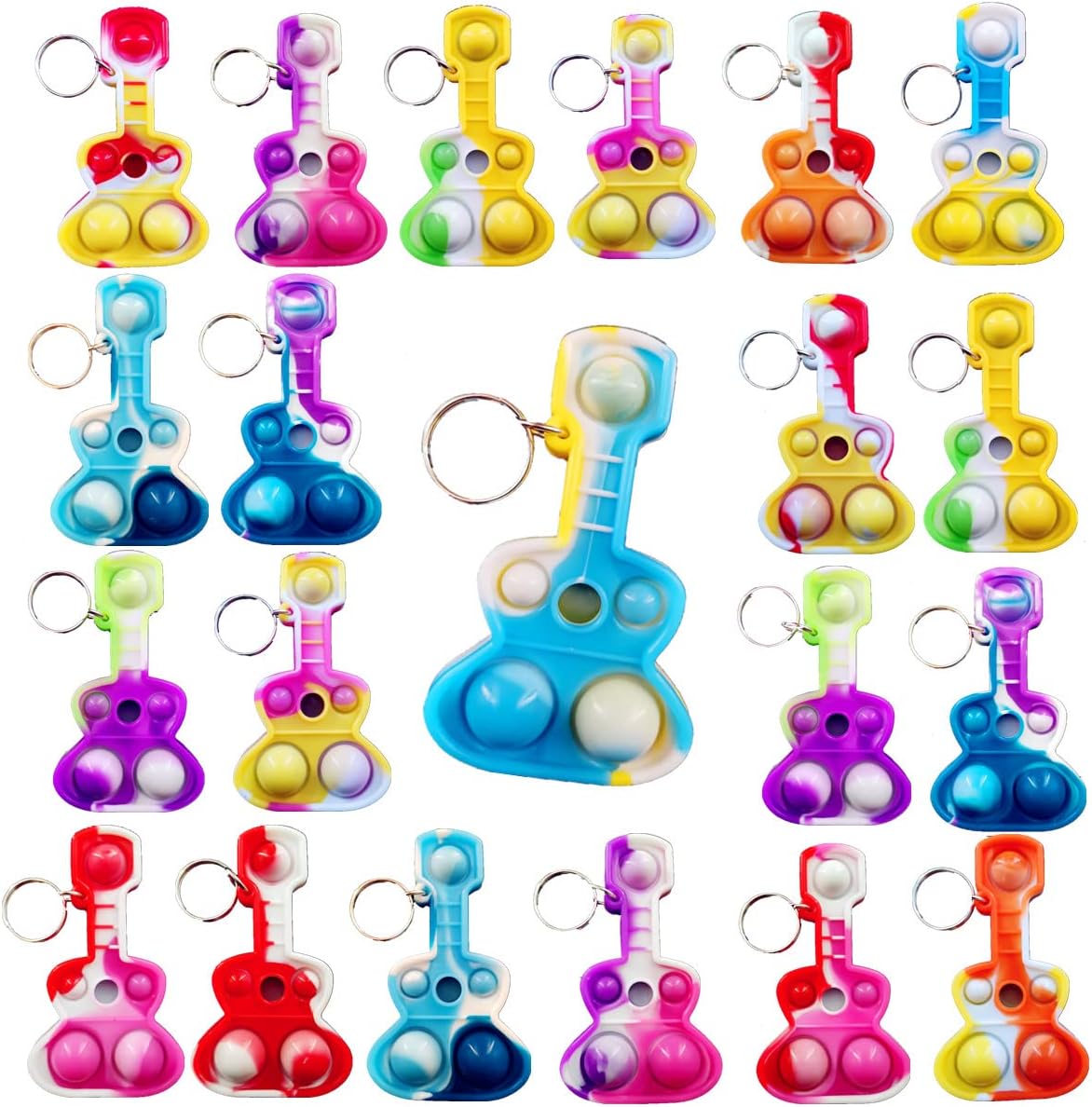 2,Fabricated from silicone,bundle included:30 pcs mini pop Guitar form key chains,Random shade to ship