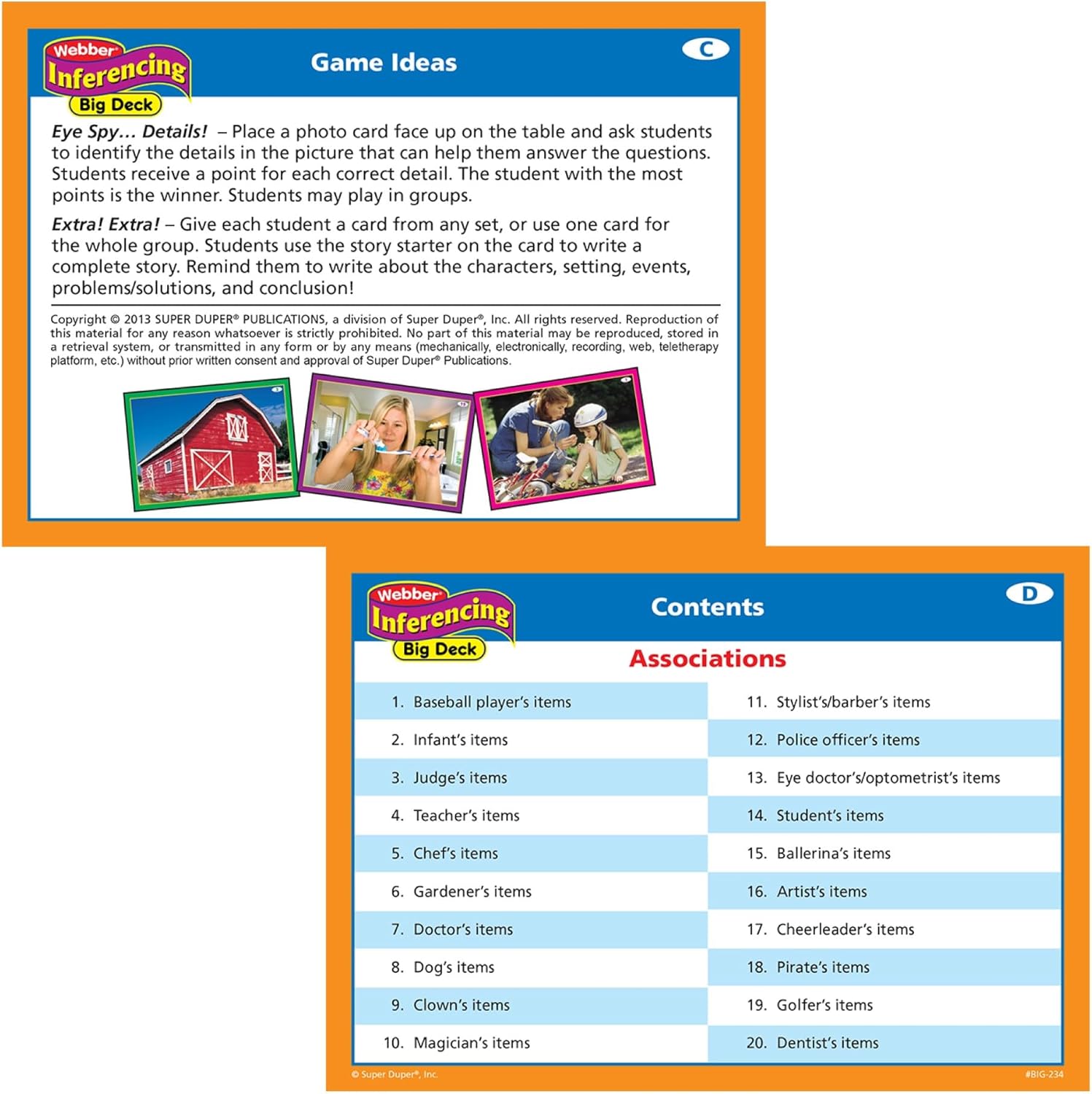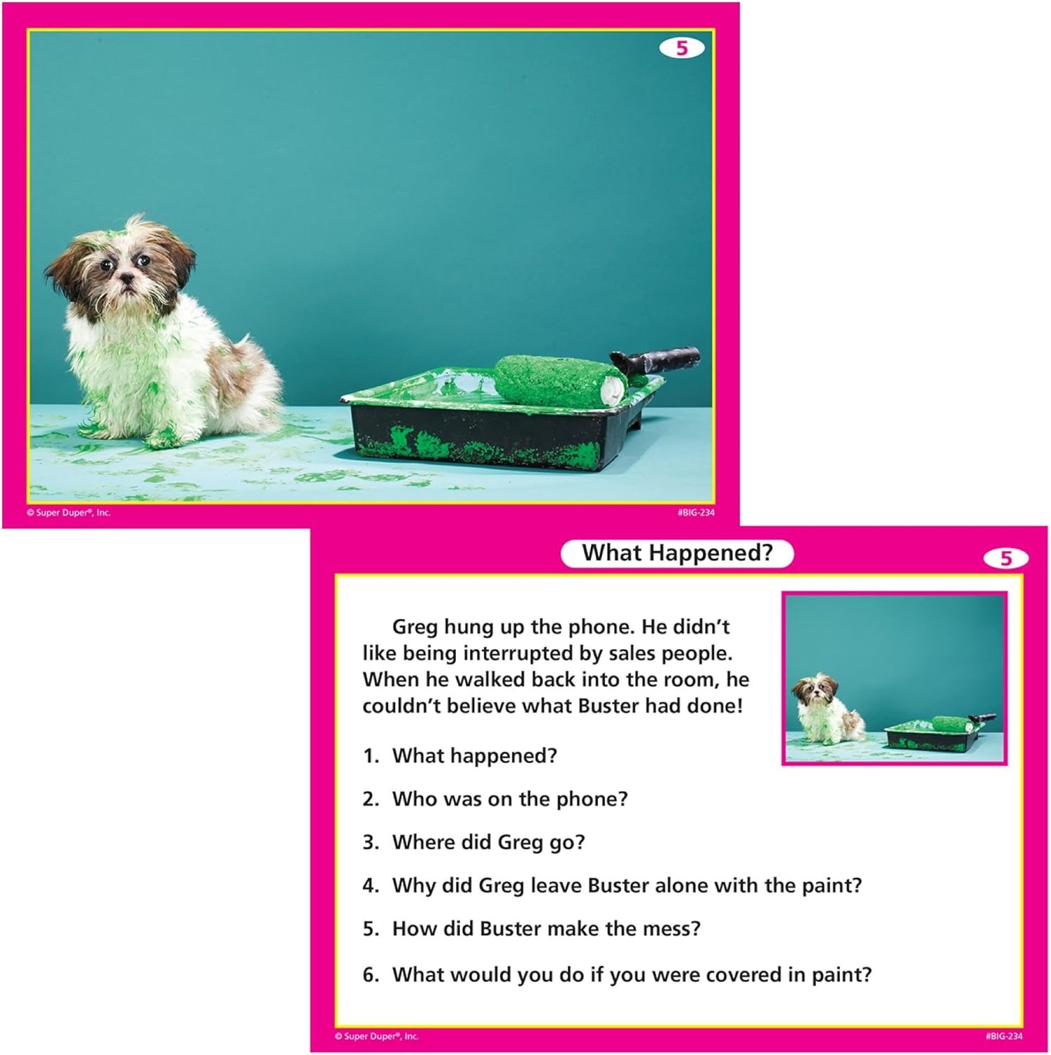 5 Matter Areas – Associations (This stuff belong to…), Establish the Setting (The place is that this?), Half to Complete (What’s it?), Predicting (What occurs subsequent?), and What Occurred?