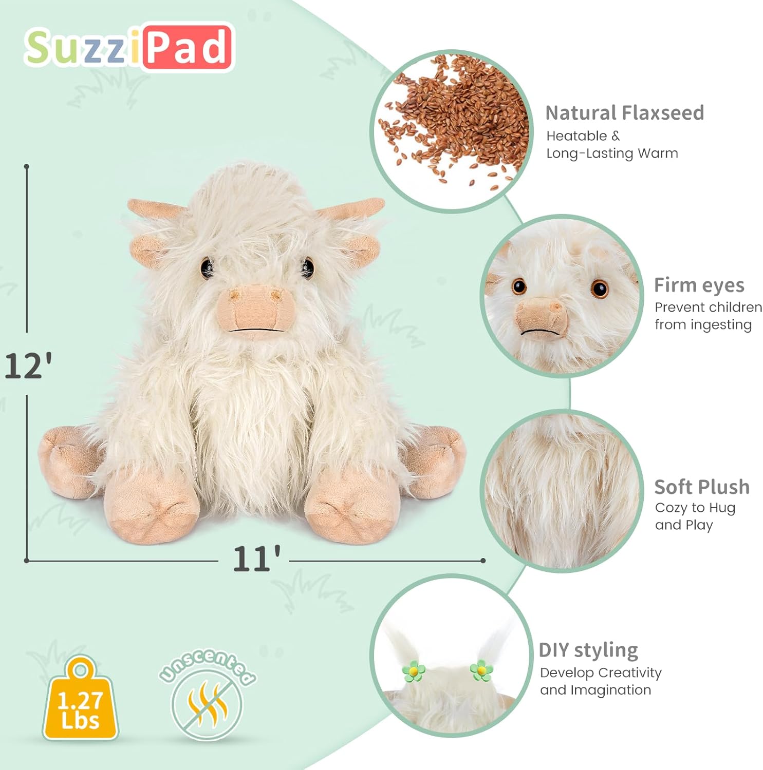 Beautiful and Practical Design: Unique design from SuzziPad, the cow stuffed animal plush has beautiful workmanship, a sensible look, and correct particulars of fur and options, which distinguish it from different heating pad stuffed animal in the marketplace and turn into your most original companion. Suzzipad cow stuffed animals are your best option for highland cow lovers!