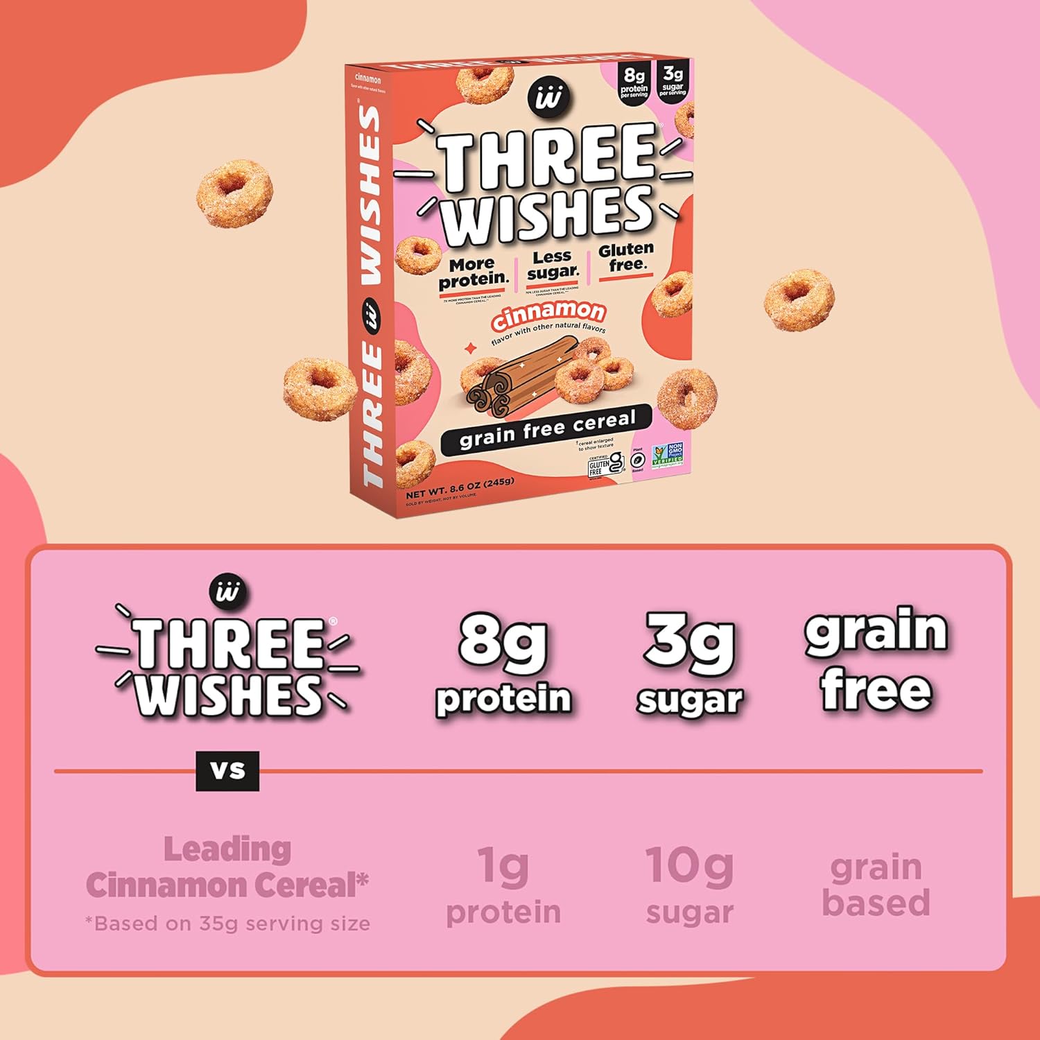 They Say Good Issues Are available in Threes: Three Needs Cinnamon cereal incorporates 8g of protein, 3g of sugar and is made with nutrient-rich, plant-based components. A superb breakfast or snack selection.