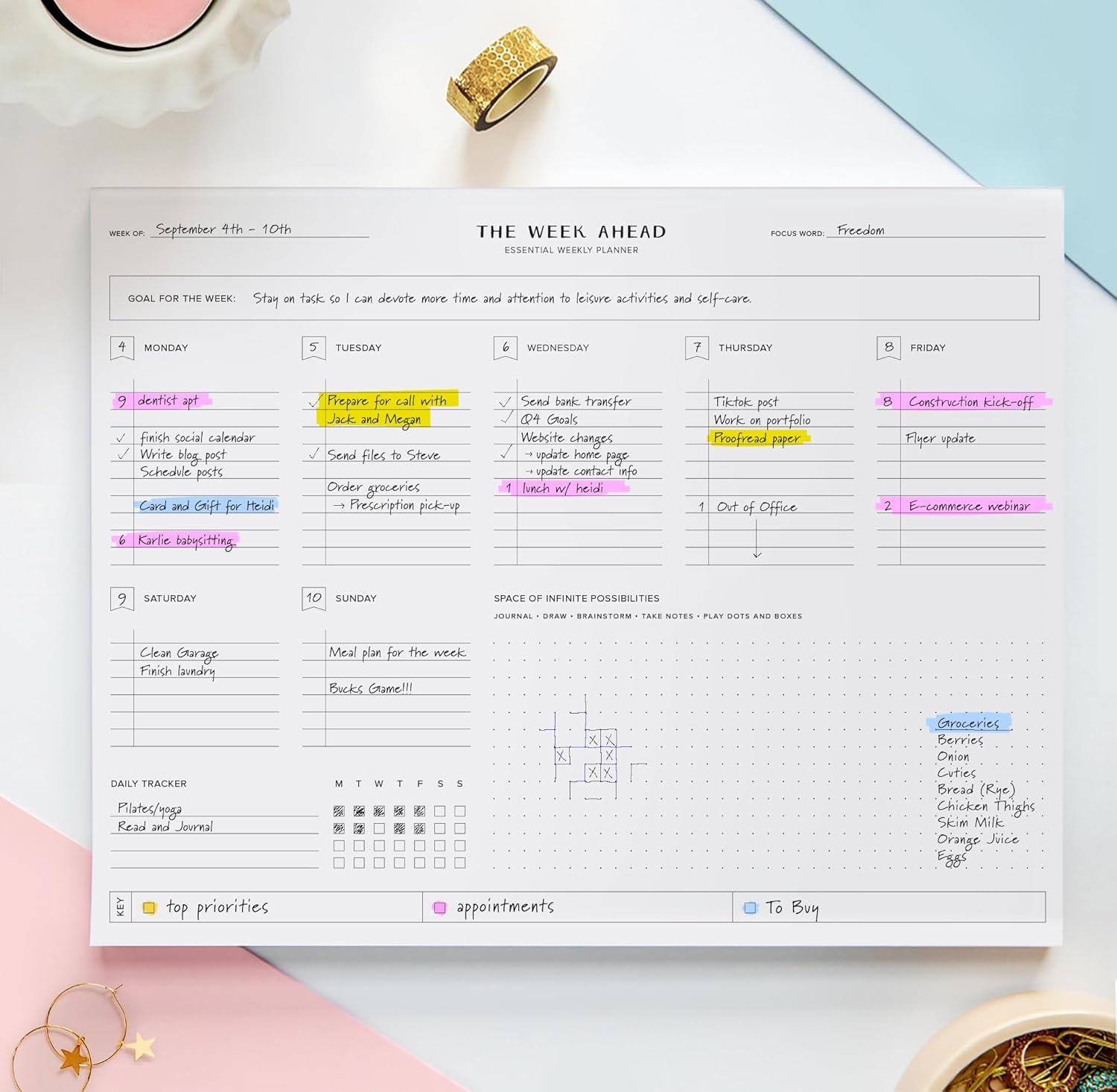 Keep Organized & Motivated: Our important, must-have weekly planning pad options an inspiring design that retains you centered and productive with 50 sheets of purpose setting, time administration, and to-do lists.