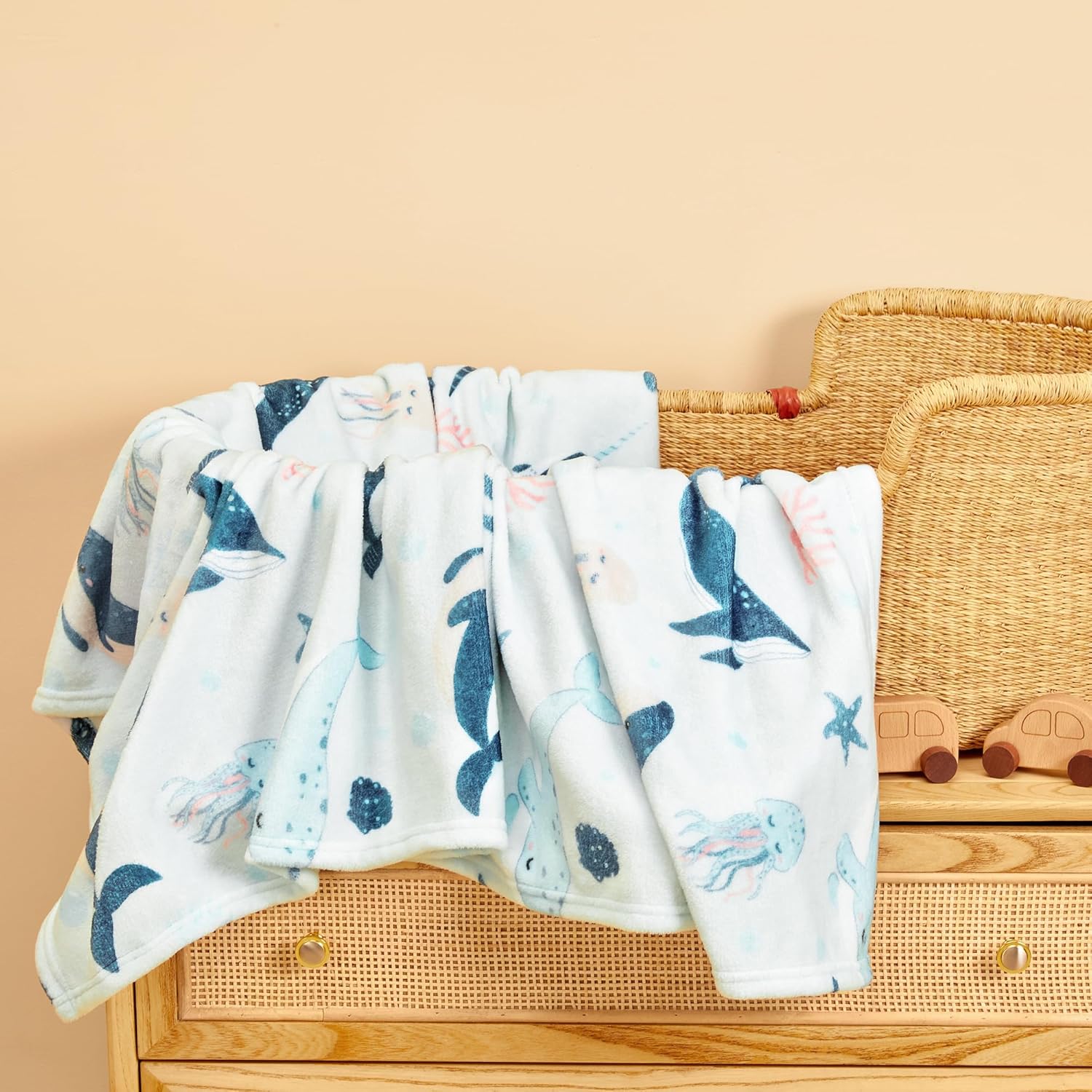 • TILLYOU Toddler Flannel Blanket – Warm and Cozy Baby Blanket for Boys and Girls, Smooth and Creamy Blanket, Cute and Lightweight, 40×50 inches, Whale