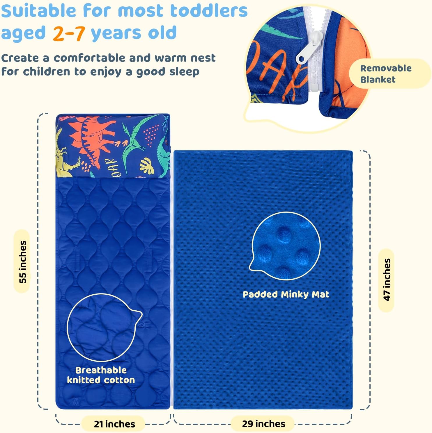 4. Handy Design: Design with handy fastening closures straps and the carrying deal with, the toddler daycare sleeping bag will be rolled up. Geared up with identify tag for straightforward identification. Its travel-friendly design makes it straightforward in your infant to take their sleeping mat to-and-from faculty, sleepovers, and extra