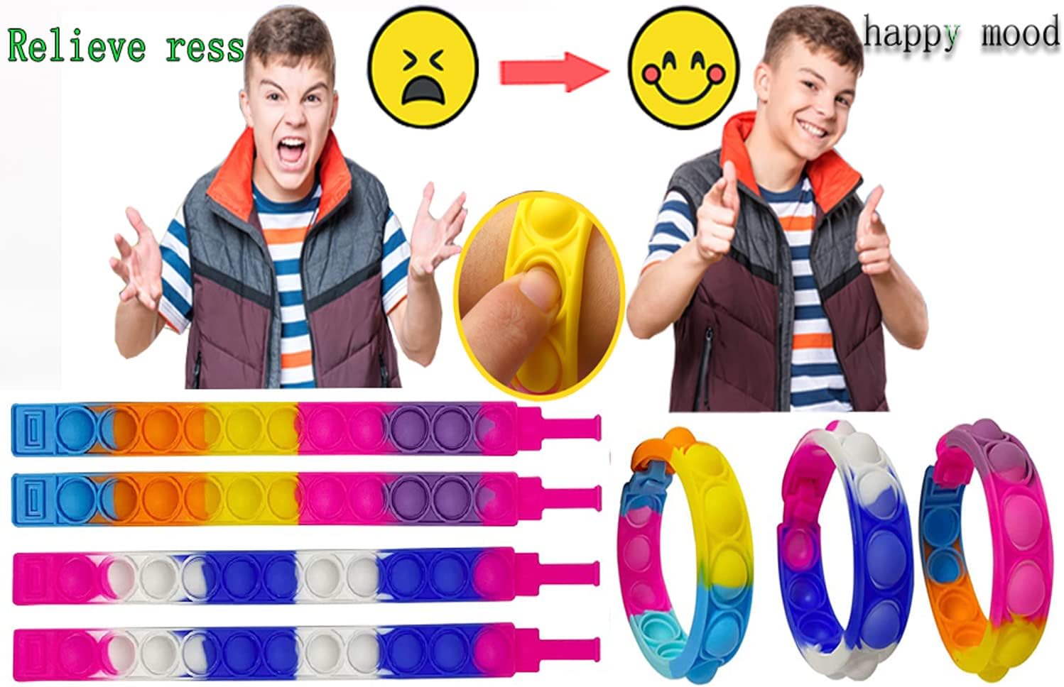 【Nice Stress Reliever】These fidget toy bracelets can successfully relieve anxiousness and stress by urgent and the popping sound it makes.These pop bracelet toys are excellent for kids and adults, particularly individuals with autism, ADHD and hassle concentrating.You will get psychological consolation and emotional launch.