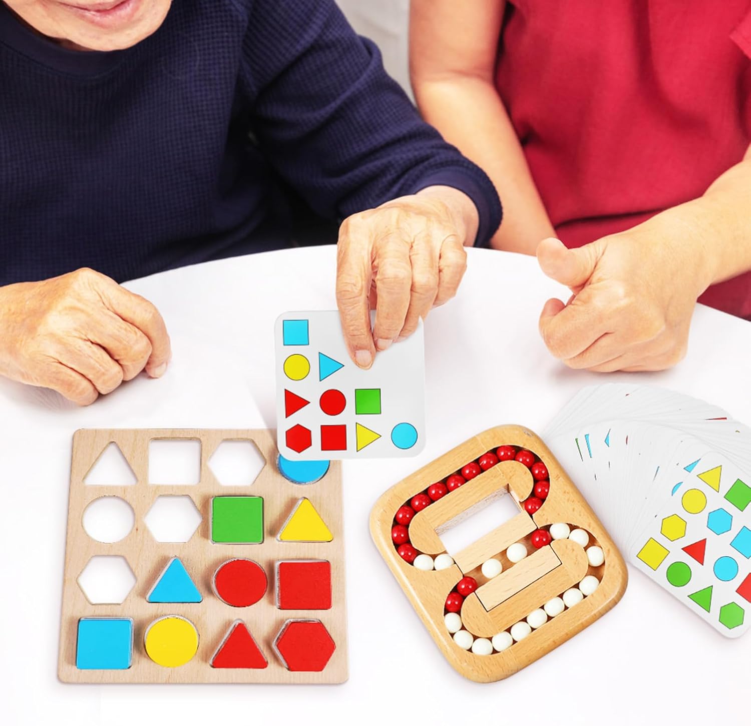Picket puzzle sport: In response to the cardboard , put of various colours and shapes into the corresponding positions of puzzle base. Seniors can attempt to full the puzzle straight from reminiscence with out referring to the cardboard to additional enhance the issue. As well as, a number of puzzles may be mixed to kind bigger patterns, growing the complexity and enjoyable of the sport.