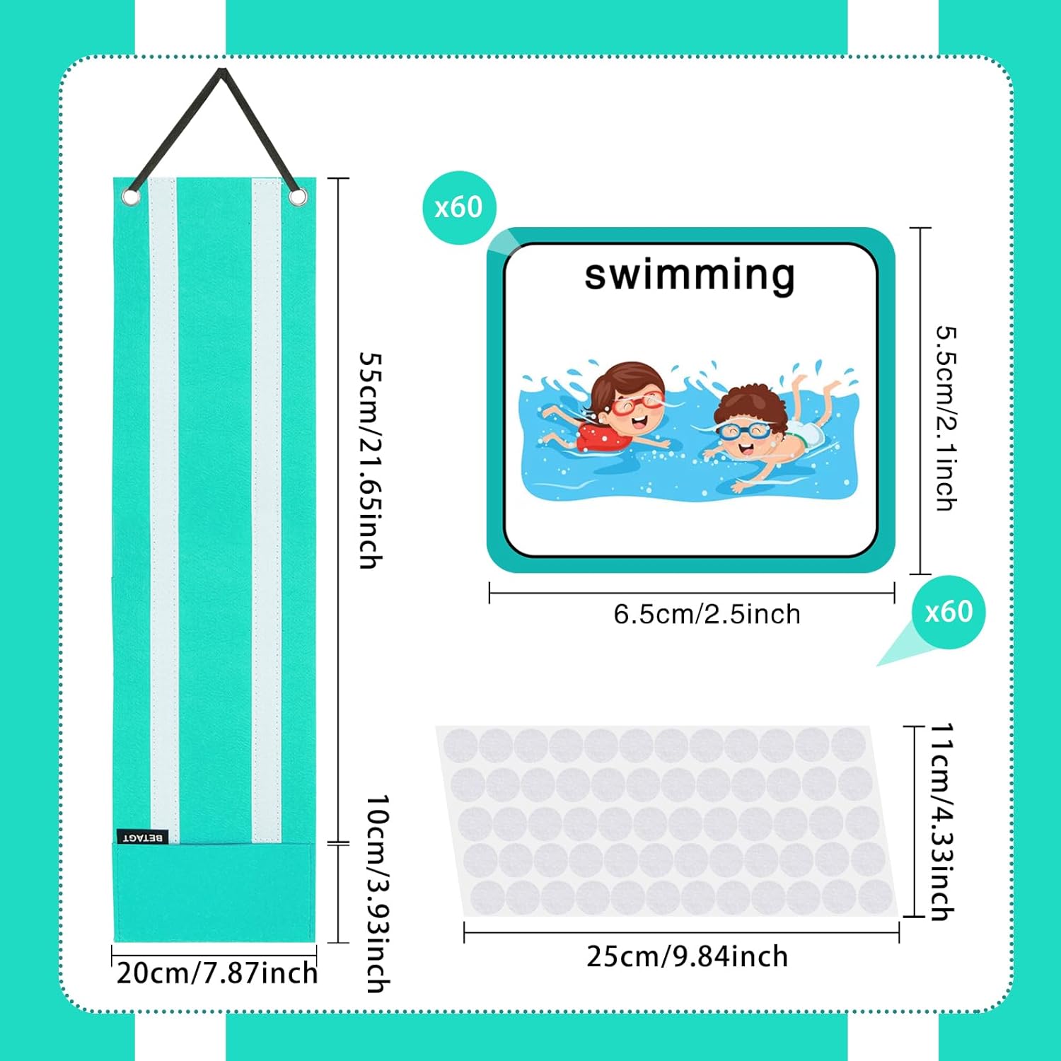 【Straightforward to make use of】The visible schedule playing cards are simple to make use of. You simply want to stay the dot velcro on the again of the cardboard and stick the cardboard on the felt background board hanging bag. The felt hanging bag can maintain 10 playing cards at one time. Moreover, there’s a small pocket below the hanging bag to carry playing cards. The felt bag additionally has a lanyard, which may be held on the door, blackboard, and so forth..