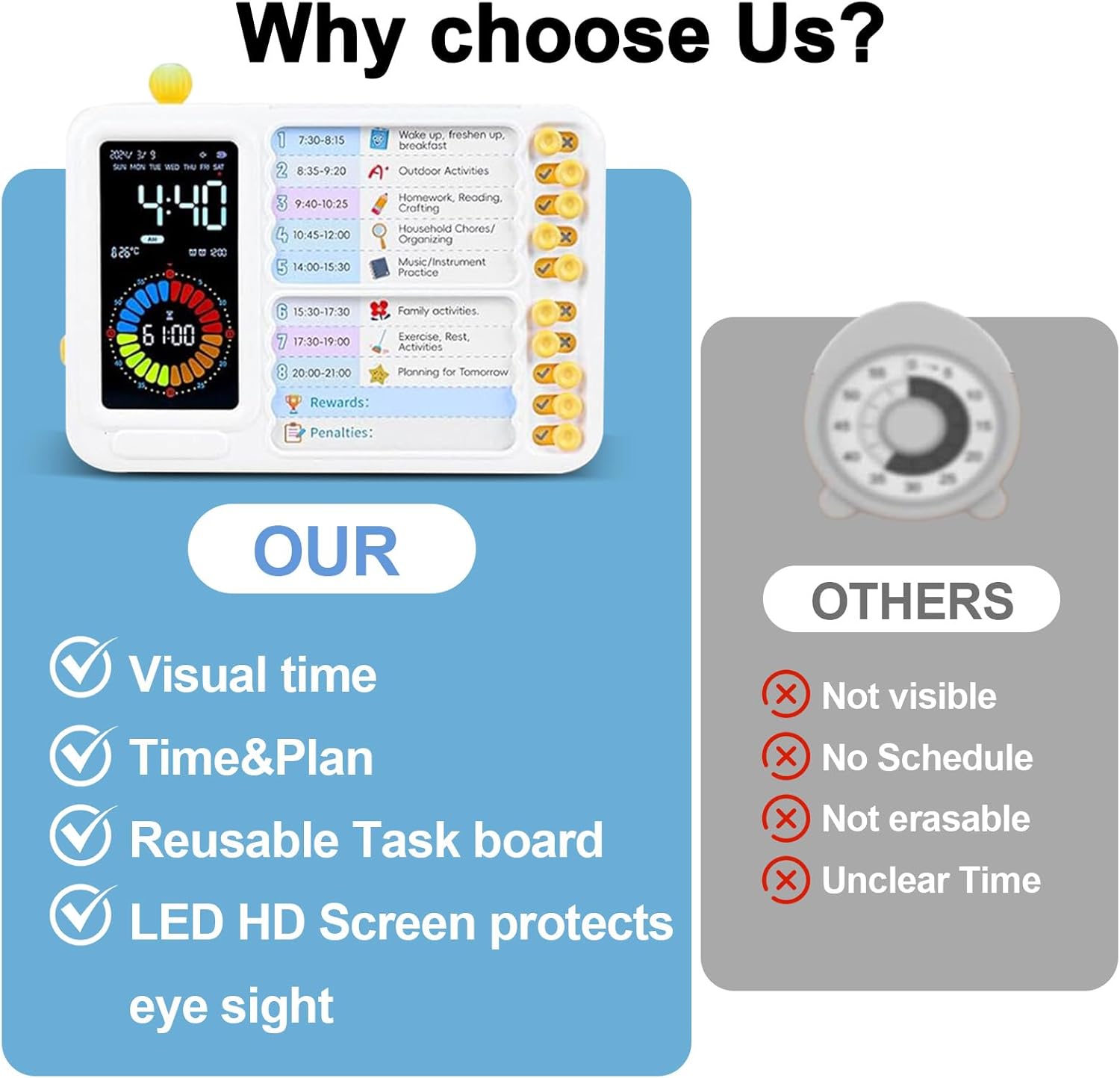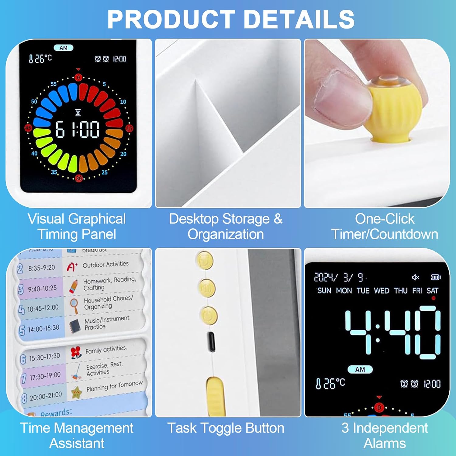 【4-in-1 Time Administration Instrument】This children timer visible organizer combines a storage space, visible timer for toddlers, alarm clock, and process tracker—excellent for chores, homework, and every day routines. Increase productiveness for all ages with this productiveness timer, designed to construct focus and time consciousness. The big visible timer for classroom use helps children and adults keep on monitor effortlessly.