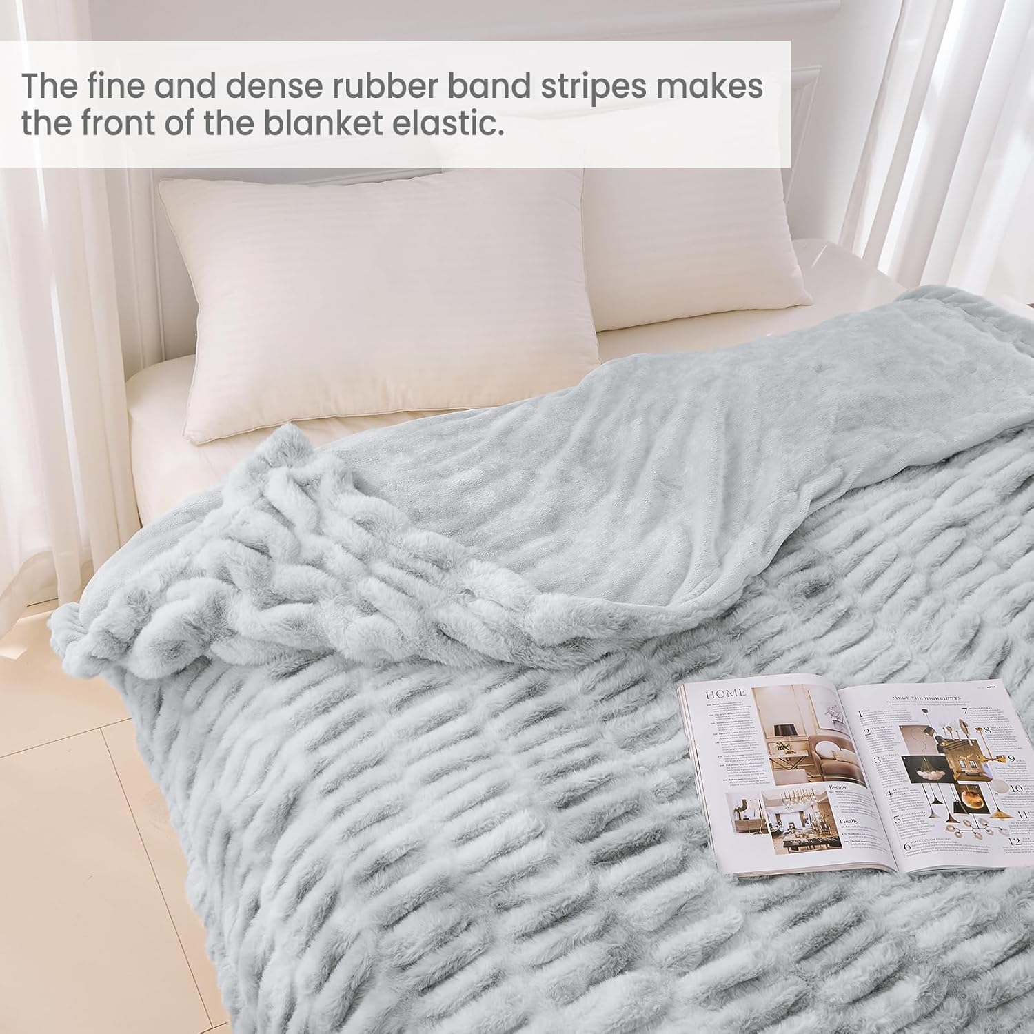 Double-Sided Fake Fur Blanket: Excessive-grade striped rabbit fake fur face design in mild gray shade, makes this throw blanket really feel hotter and shiny. The skin-friendly flannel fleece material in reverse provides you a extra cozy feeling.