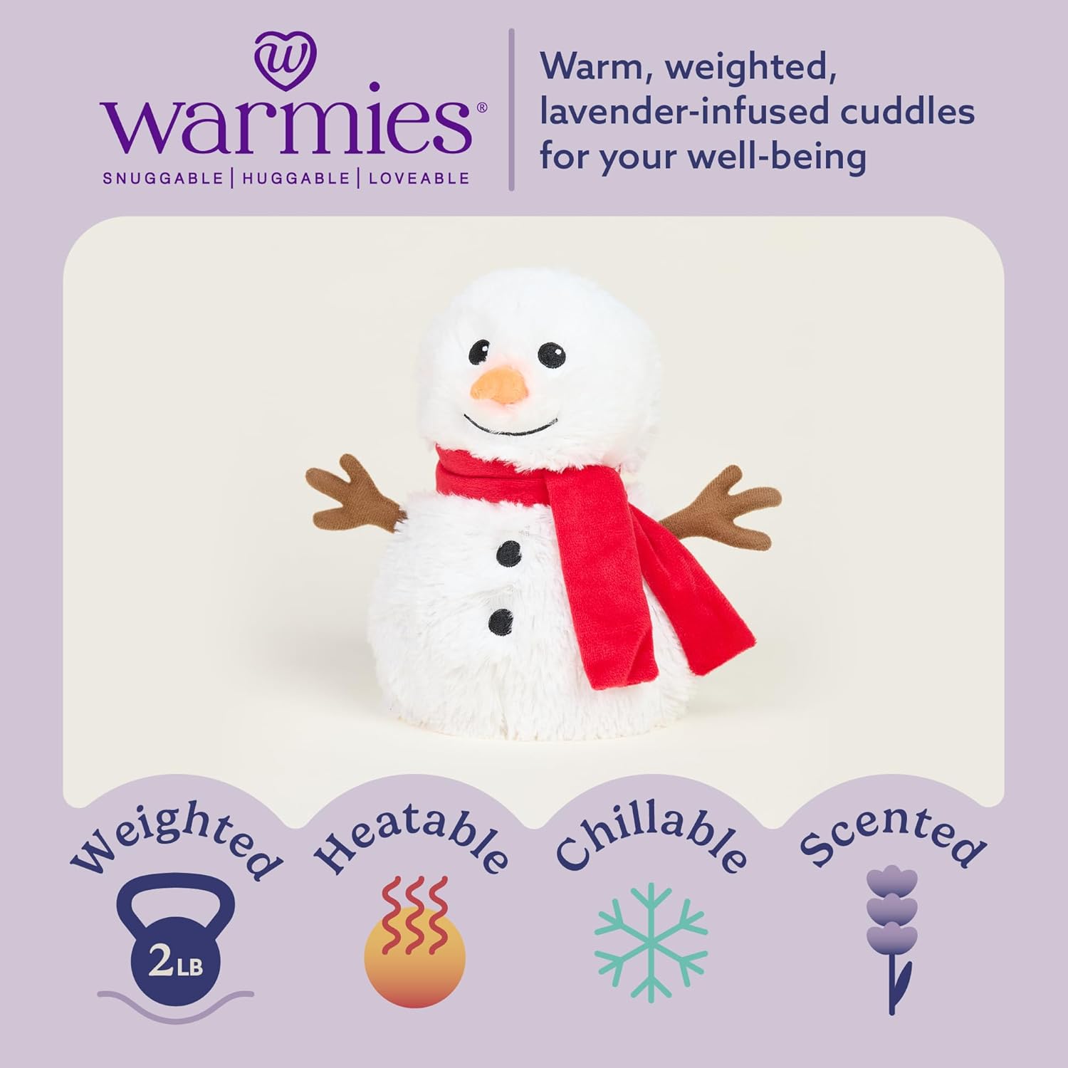 Warmies Microwavable Stuffed Animal: Pink Scarf Snowman is a snuggable, huggable, lovable weighted plush toy for all ages that may be simply heated to supply hours of soothing heat or chill within the freezer for a refreshing cool contact. Good for consolation and snuggles. 13 inches tall, 1.5 lbs.