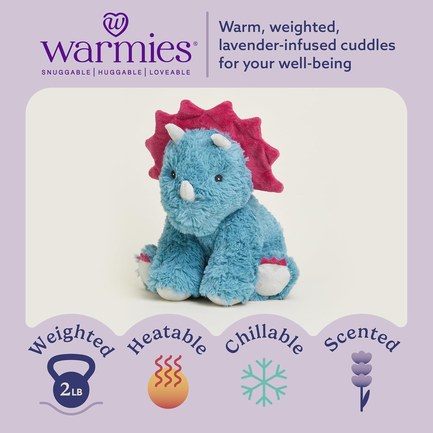 Warmies Microwavable Stuffed Animal: Triceratops is a snuggable, huggable, lovable weighted plush toy for all ages that may be simply heated to offer hours of soothing heat or chill within the freezer for a refreshing cool contact. Good for consolation and snuggles. 13 inches tall, 2 lbs.