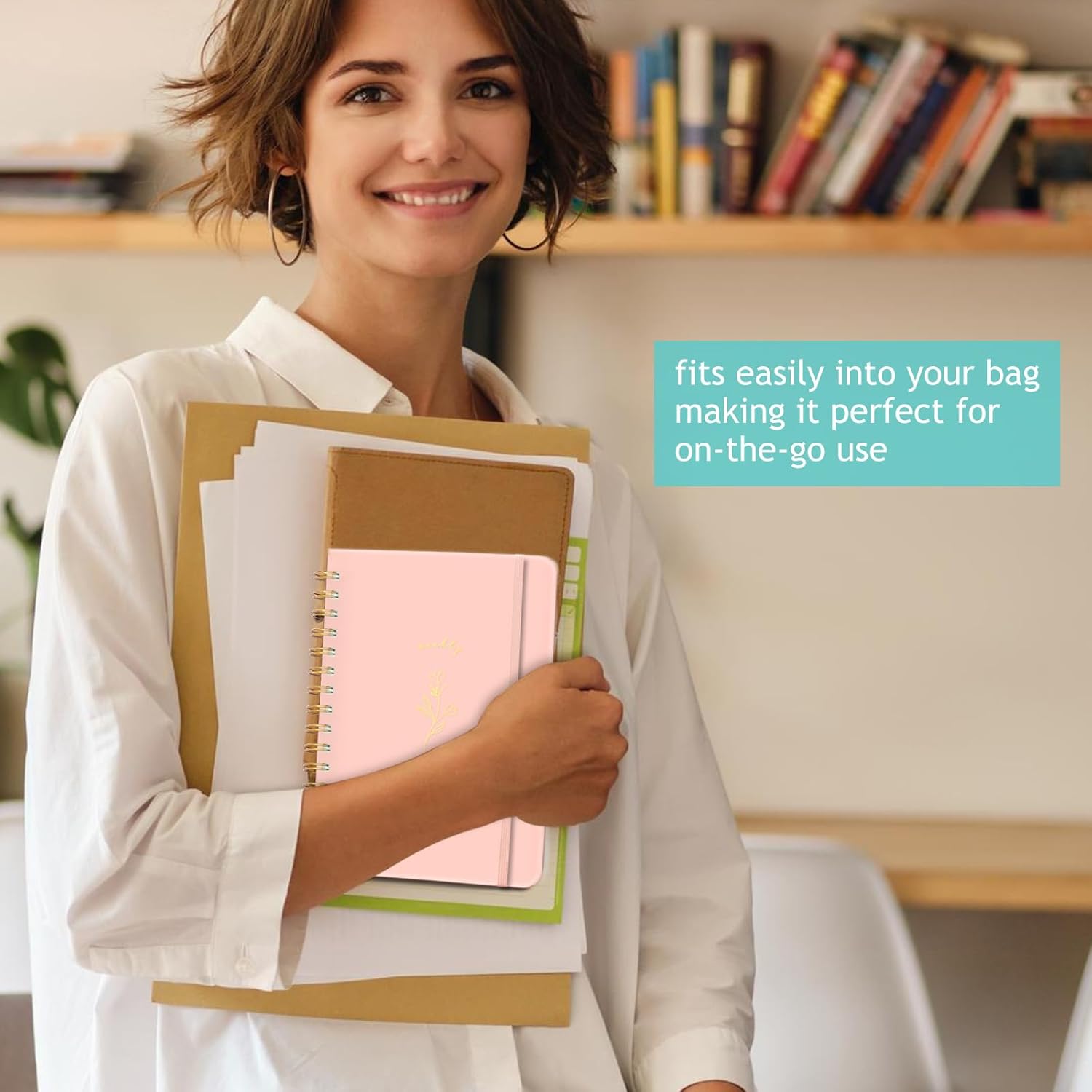 【Premium Paper & Spiral Binding】The undated weekly planner is fabricated from premium thick paper, which prevents ink bleed-through and ensures clean writing that you need to use something pens or markers. Twin-wire binding offers sturdiness and adaptability for clean page-turning. Refreshing writing expertise