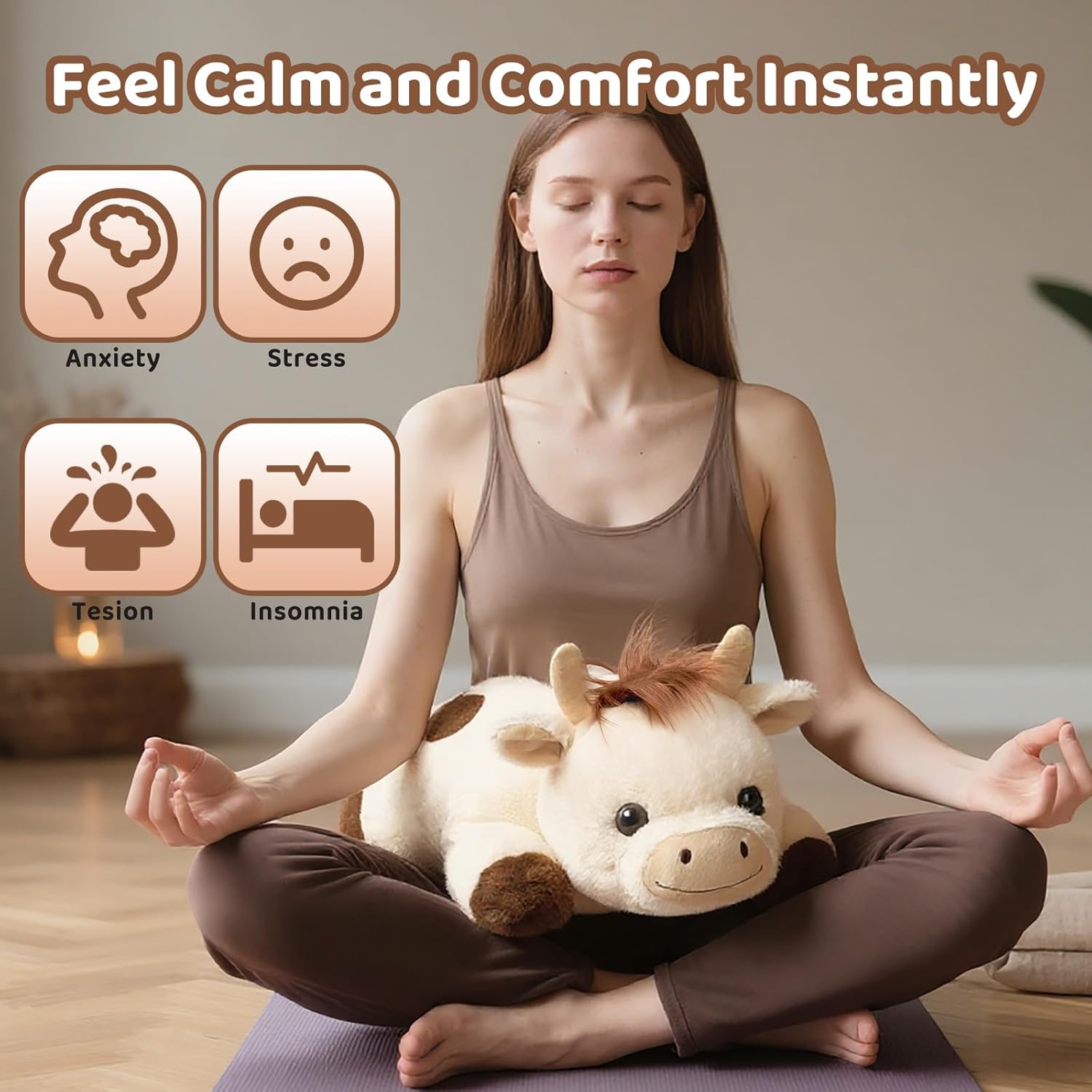 Advisable cow Plush Heat Present- This big weighted stuffed animal for youths and adults brings heat and calm to anybody who holds it. With its mushy design and ideal measurement, it makes a loving reward for birthdays, Christmas, or just to point out somebody you care about. Perfect for youths needing a cuddly companion, companions searching for cozy consolation, or relations in want of a delicate hug.
