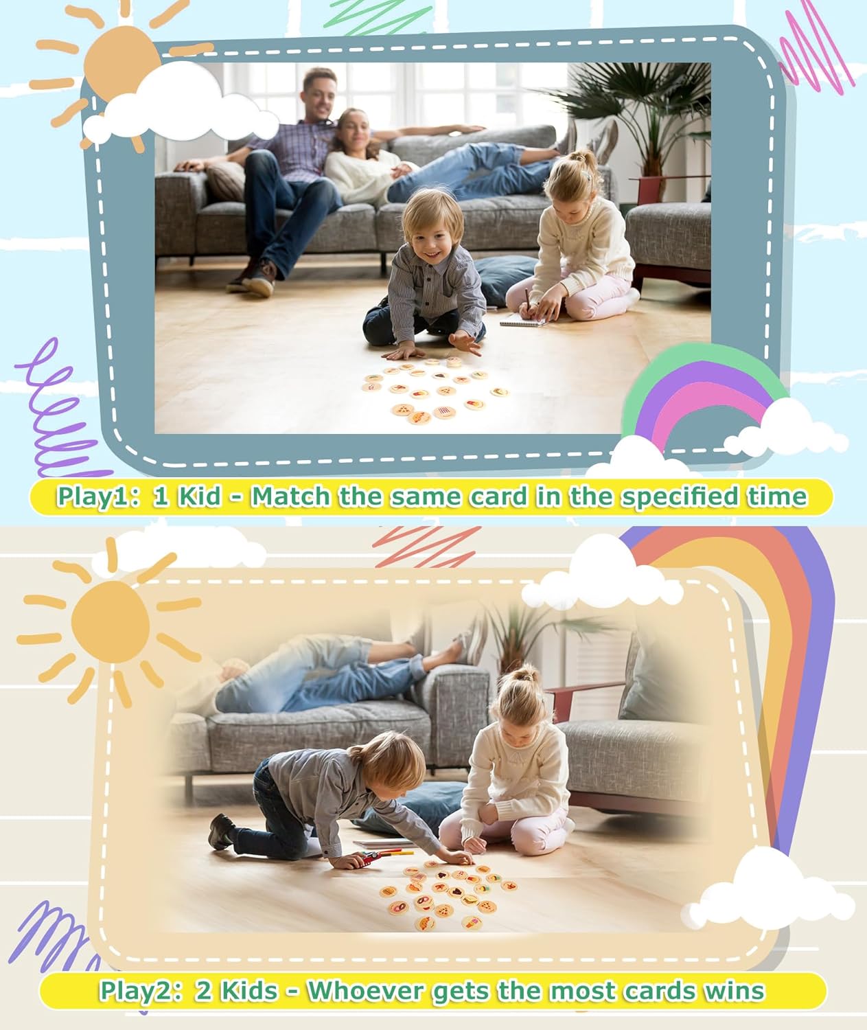【Instructional& Studying Recreation】This matching reminiscence sport set is designed for kids’s preschool schooling; The proper mixture of delicacy patterns and reminiscence toys might help youngsters enhance focus, matching, and reminiscence; The sport has the potential to play an vital function of their future schooling