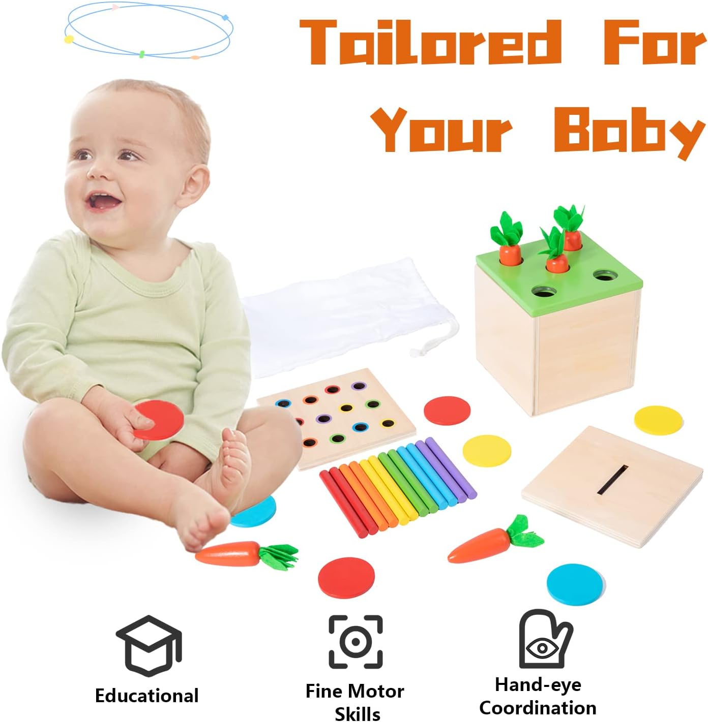 🥕【Montessori Toys Play Equipment】 incorporates carrot harvest recreation wood toy is a brand new studying toy for toddlers,montessori coin field for 6-12 months and coloration matchstick sorting. The high-quality motor expertise toys for 1 12 months previous train your child’s bodily improvement.