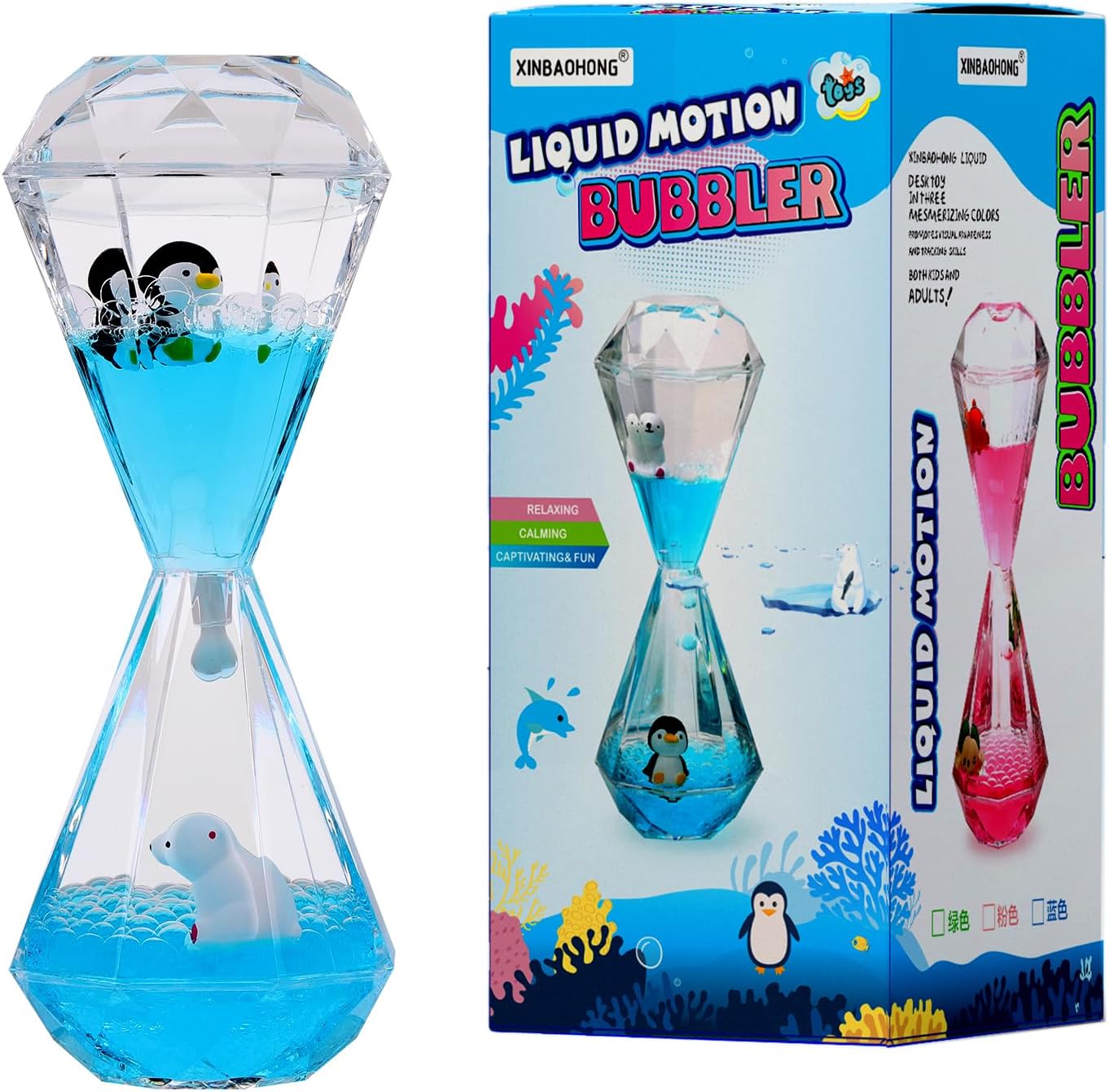 • XINBAOHONG Liquid Motion Bubbler for Kids and Adults Hourglass Liquid Bubbler Timer for Sensory Play Fidget Toy Stress Management Desk Decor(Blue)