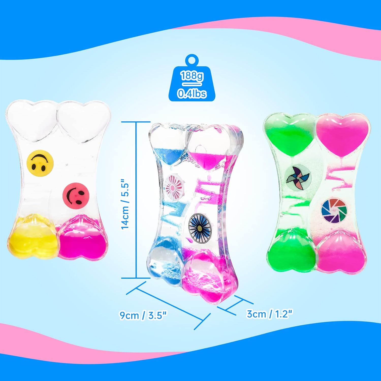 【Liquid Timer Sensory Toy for Rest】Merely flip double coronary heart form water timer fidget toy, The liquid inside will drive the windmill to rotate repeatedly(The type of the windmill inside will probably be barely totally different for every batch),repeatedly! these liquid movement bubblers will actively work to alleviate your stress, and give you hours of calming entertain ment at house and even on the workplace.