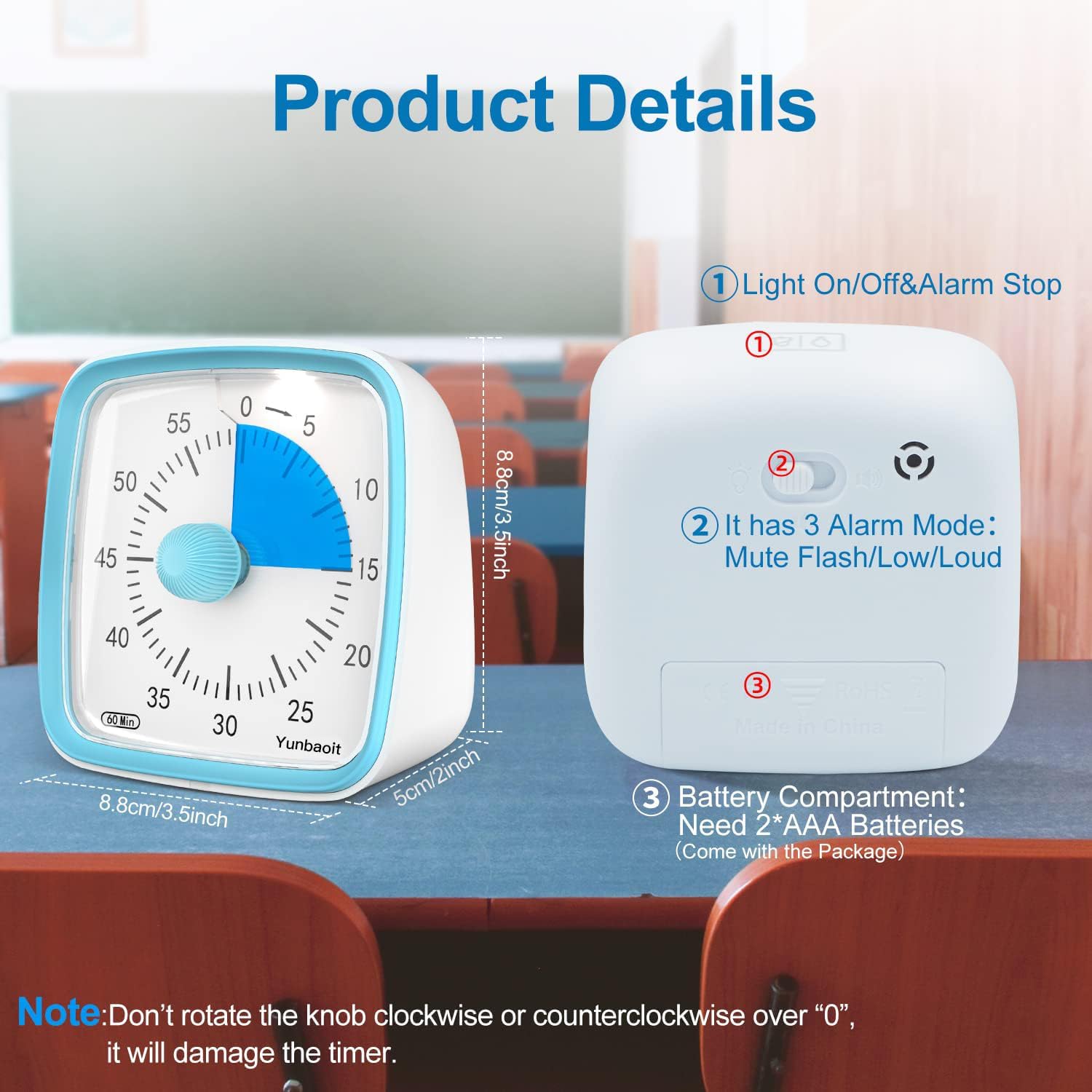 • Yunbaoit Visual Timer with Night Light, 60-Minute Countdown Timer for Kids and Adults, Silent Classroom Timer, Time Management Tool for Home, School, or Work (Light Blue)
